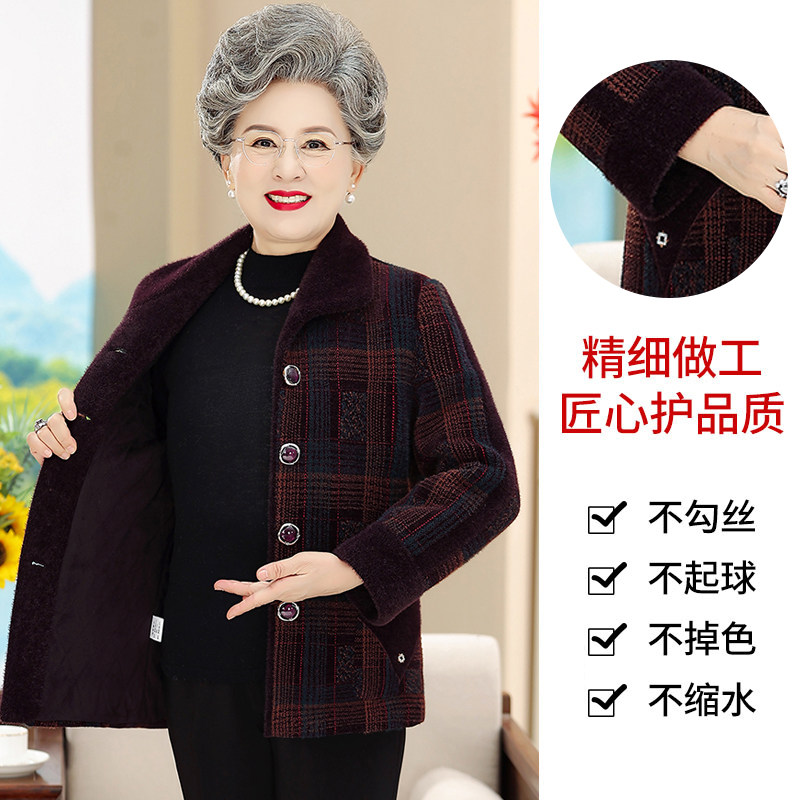 中老年人奶奶装水貂绒格子外套