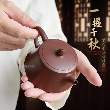 宜兴紫砂壶柱础壶 名间艺人手工老紫泥新手入门级泡茶壶 功夫茶具