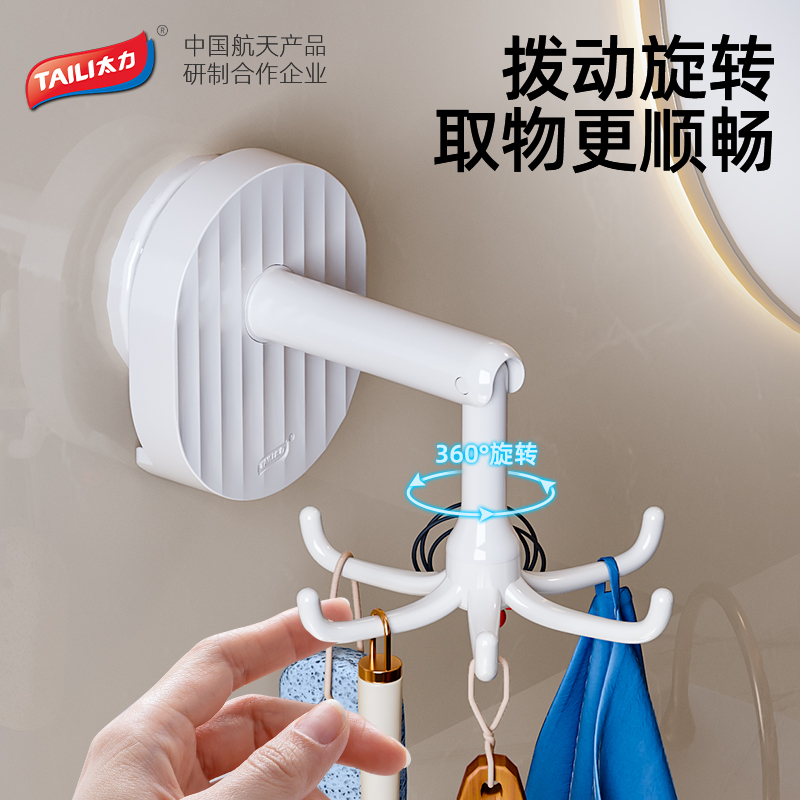 太力吸盘挂钩免打孔浴室厨房强力卫生间置物架家居挂钥匙旋转粘钩