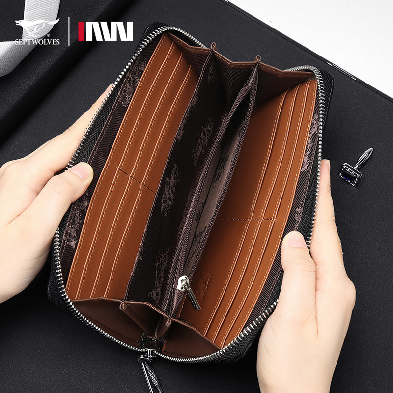 七匹狼钱包长款男士2025新款真皮大容量钱夹手包纯牛皮商务手拿包