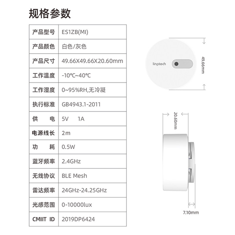 已接入米家APP联动人体存在传感器24G毫米微波人在移动感应开关