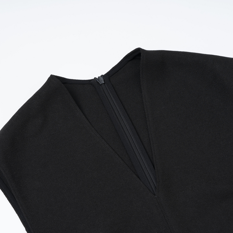 LYNEE新中式旗袍连衣裙小立领小黑裙V领修身长裙雪纺垂感连衣裙女