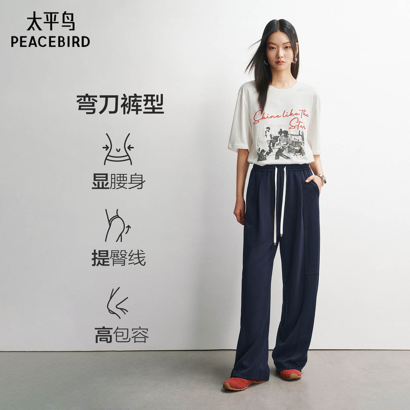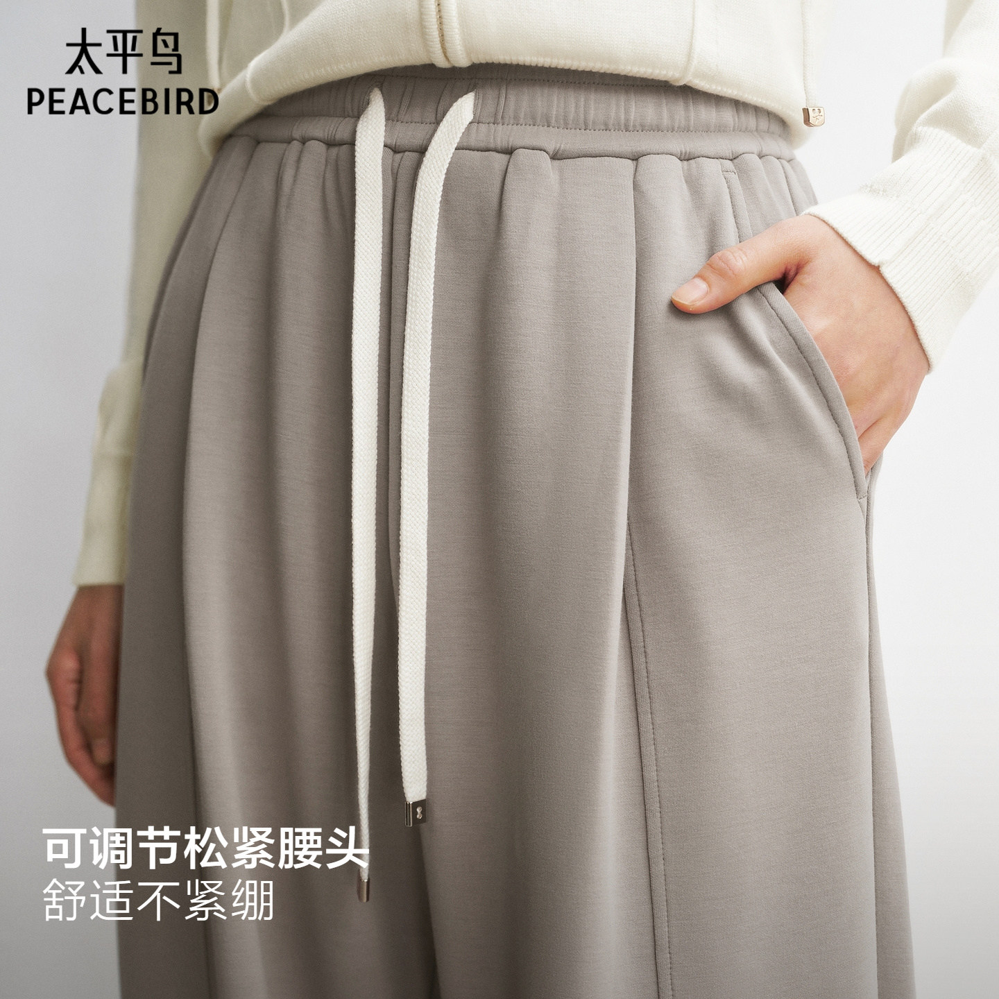 太平鸟针织弯刀卫裤2026年春季新款宽松显瘦廓形香蕉运动休闲裤女
