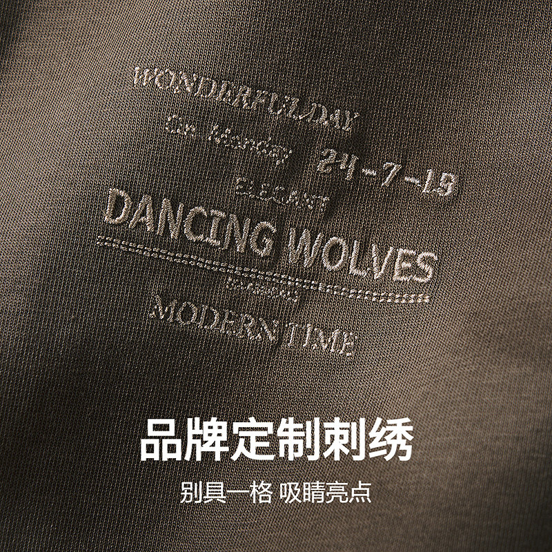 【印花】与狼共舞刺绣圆领短袖T恤男2025夏季新款抗菌冰氧吧上衣