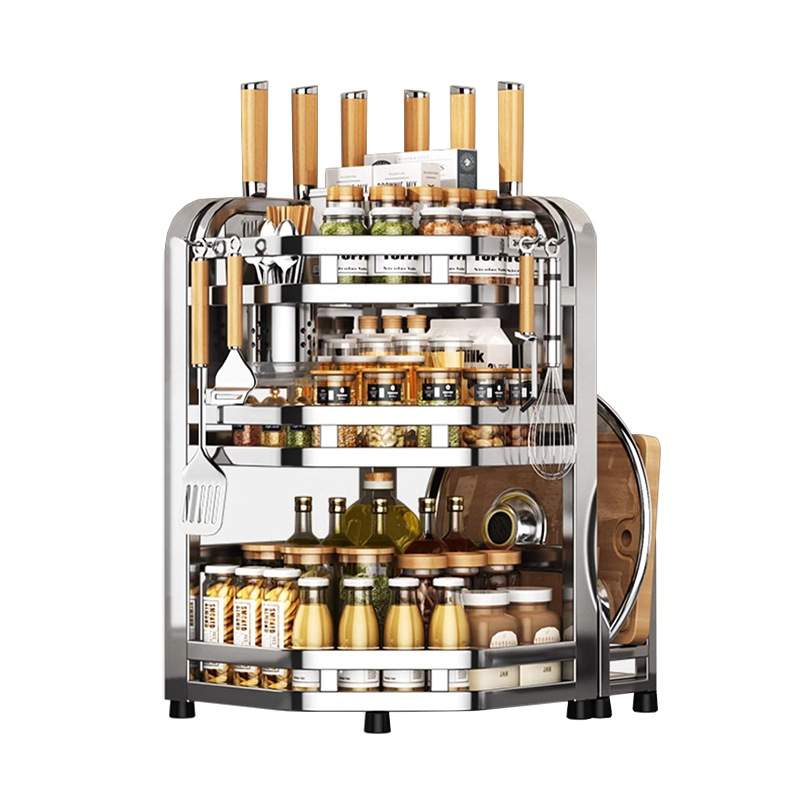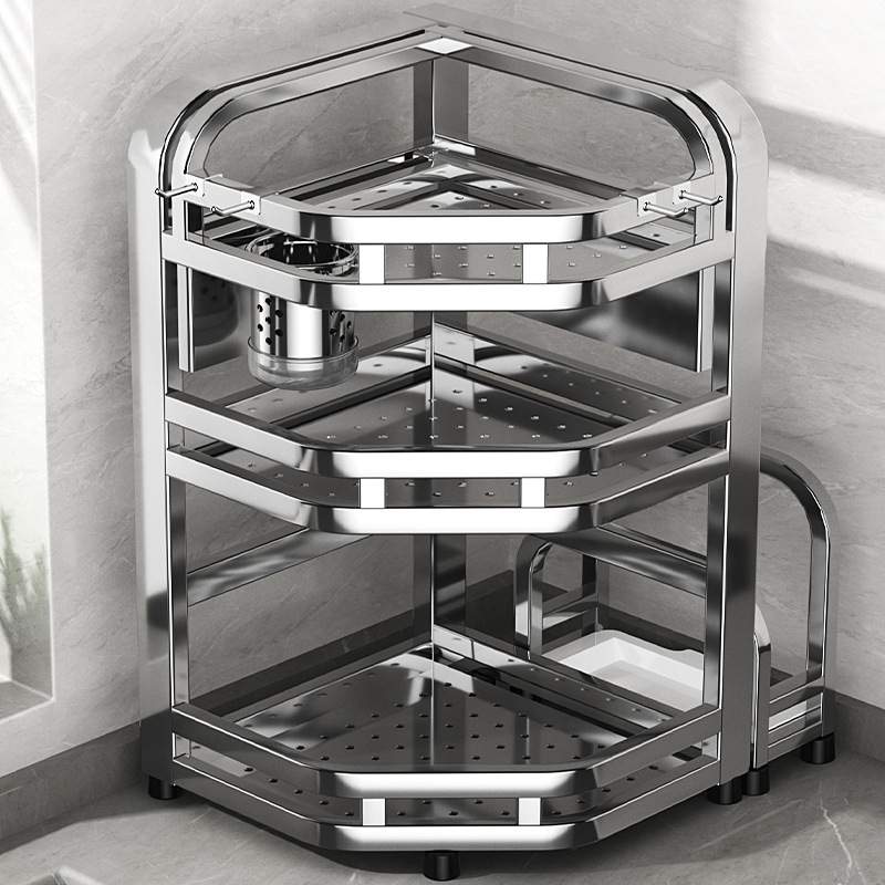 不锈钢厨房多功能置物架调味罐调料品台面壁挂三角架转角收纳架子