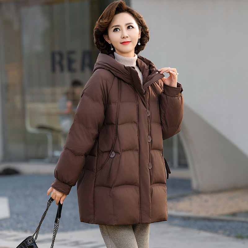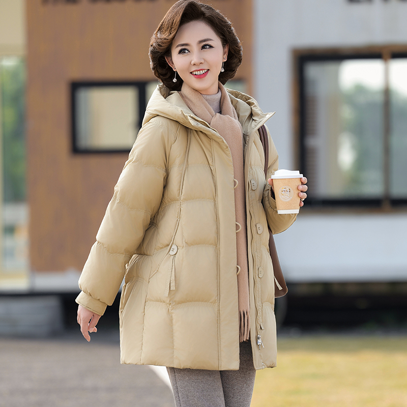 妈妈冬装2025新款羽绒服外套中年女洋气连帽棉衣服中老年加厚棉袄