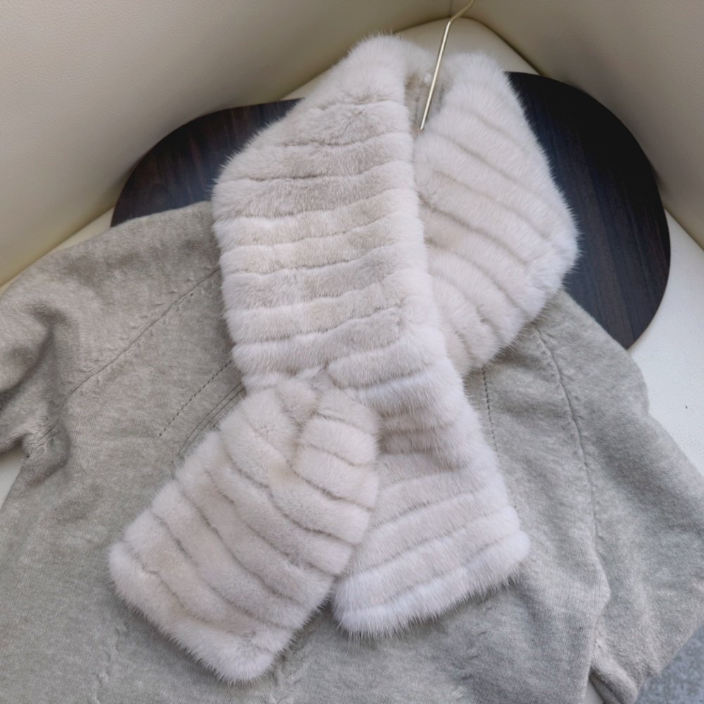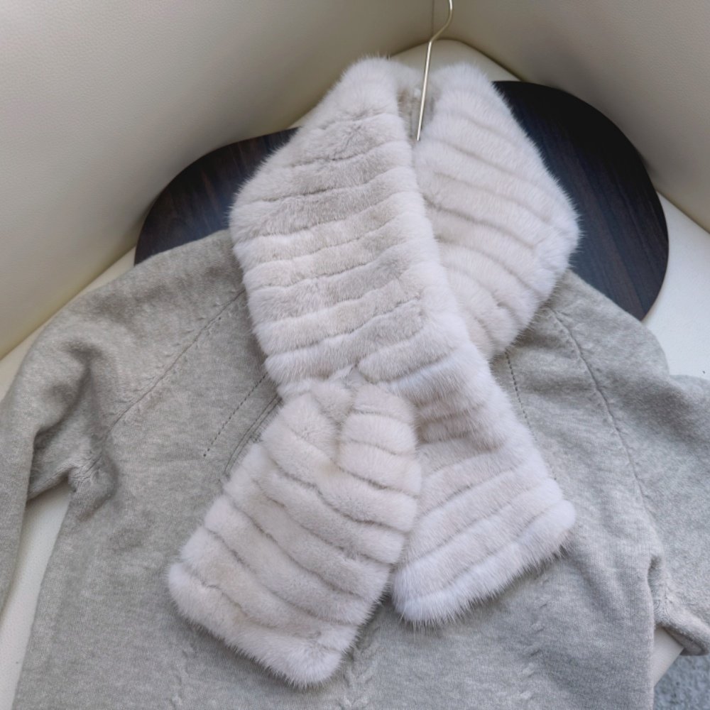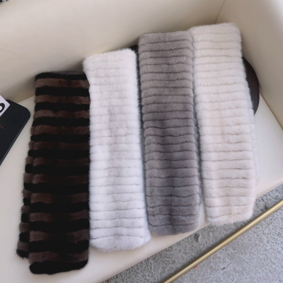 咖色拼接水貂皮草围巾双面毛皮草