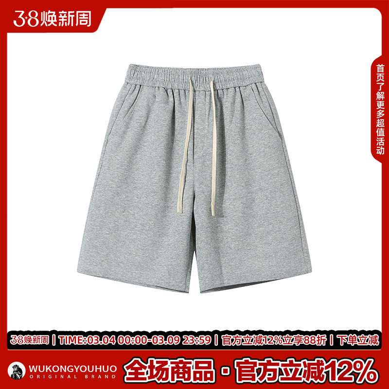 悟空有货简约纯色编织抽绳运动短裤男女潮牌街头宽松阔腿五分卫裤