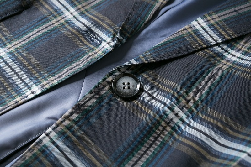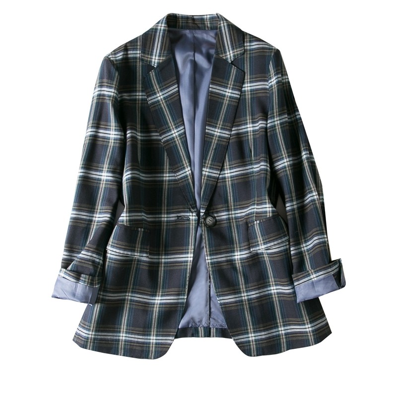 高颜值通勤 英伦风撞色大方格初秋中长款显瘦修身棉麻西装外套女