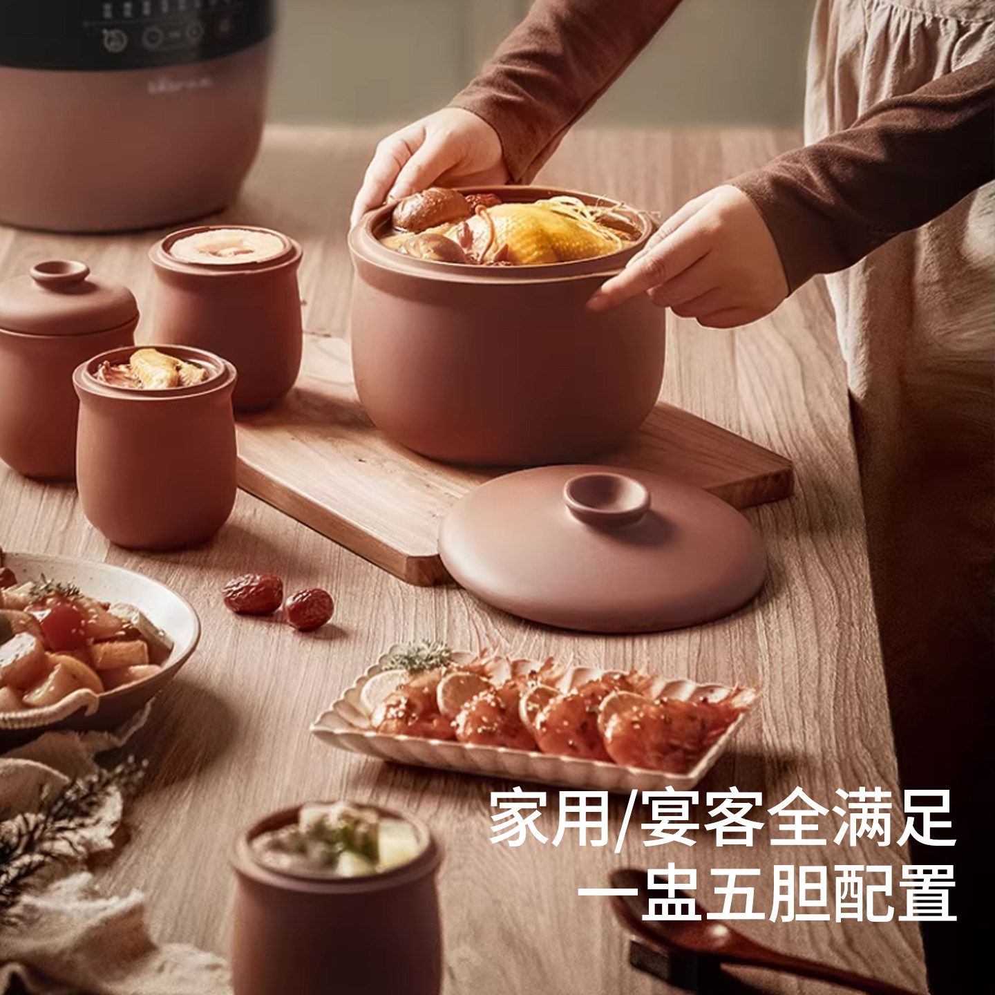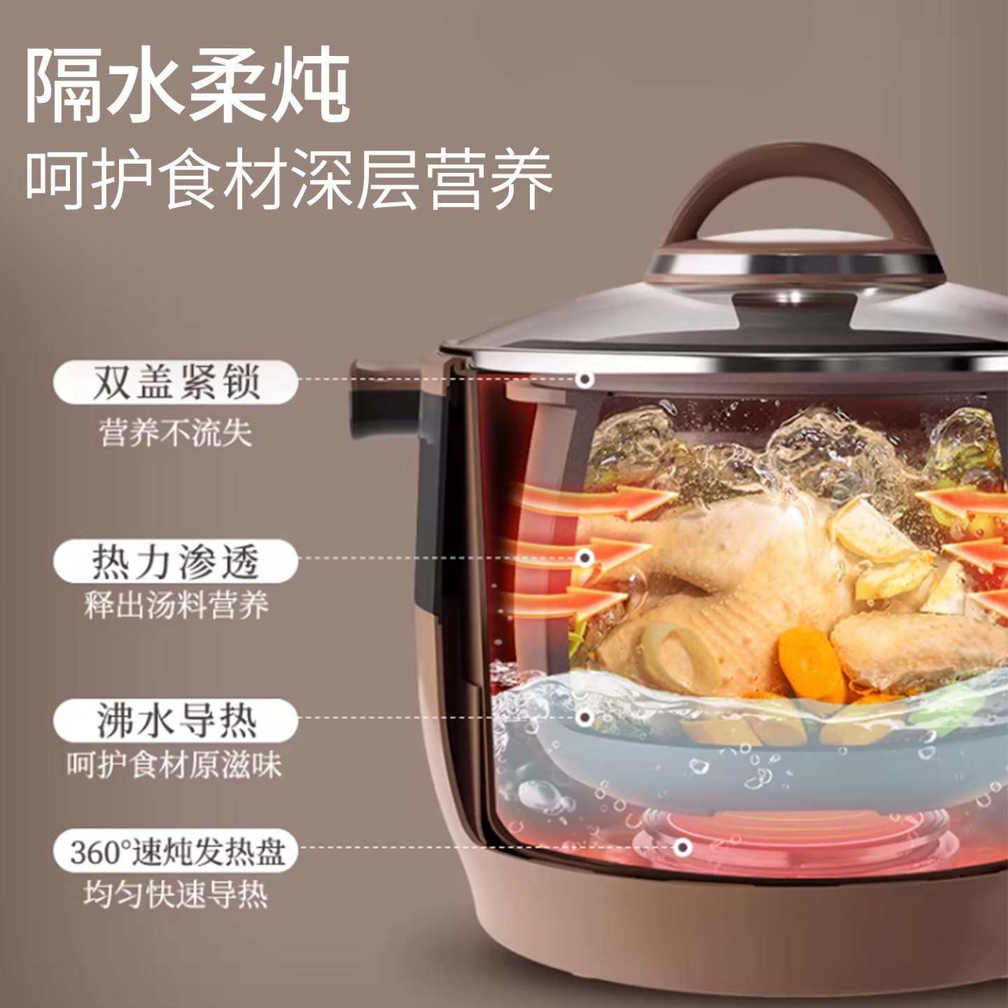小熊电炖锅陶瓷紫砂煮粥隔水电炖盅全自动煲汤家用砂锅4.5L大容量
