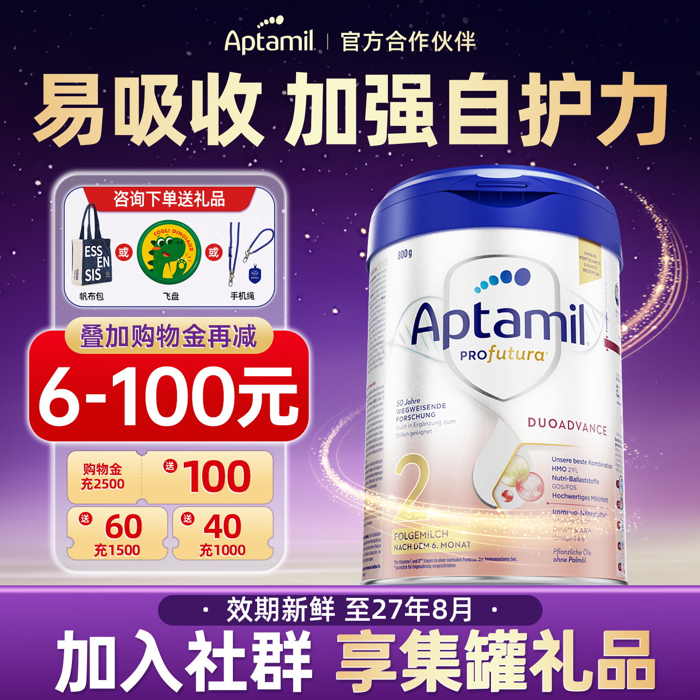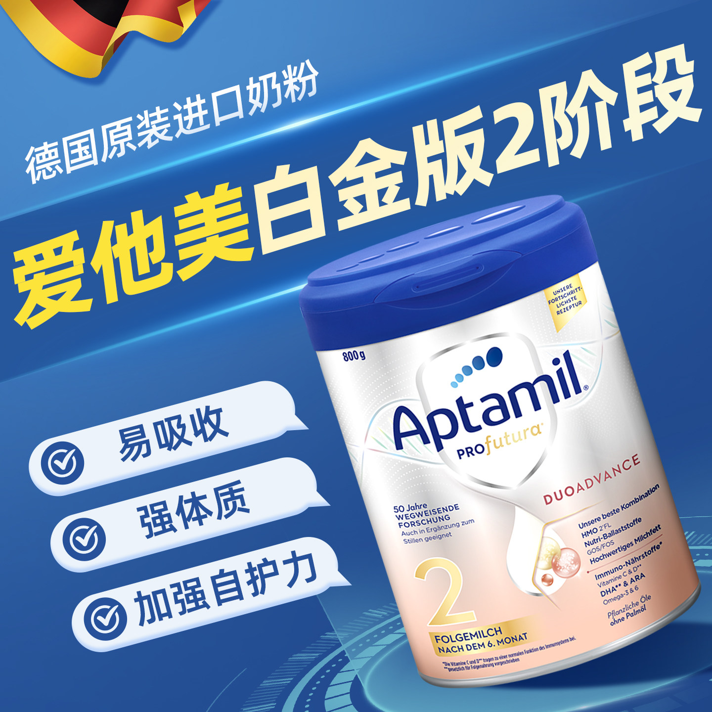 【官方正品】爱他美德国白金版2段德爱白金奶粉婴儿牛奶粉二段