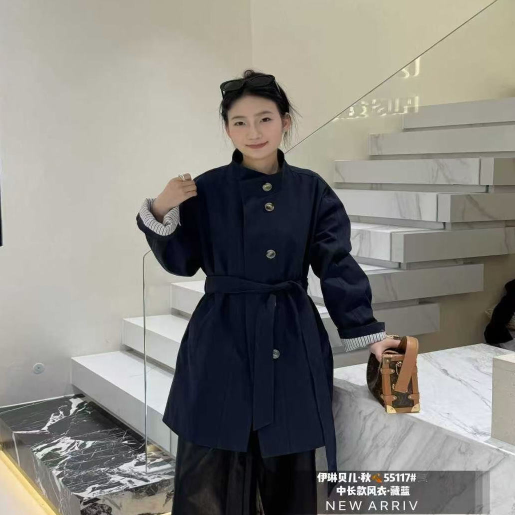 复古通勤立领风衣大码女装 伊琳贝儿55117秋季新品中长款外套女
