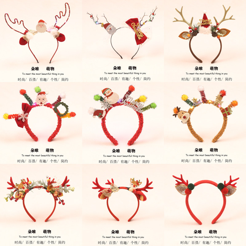 圣诞节发箍发光圣诞树麋鹿角发卡帽子节日派对装扮道具表演头饰品