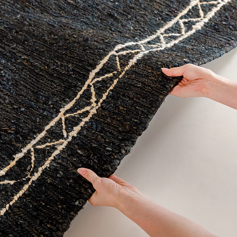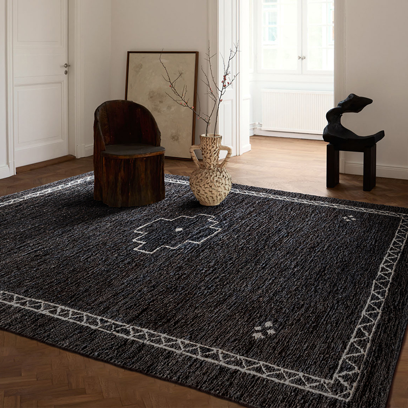 视觉味道 进口无胶黑色黄麻地毯高品质客厅茶几手工中古极简ins风