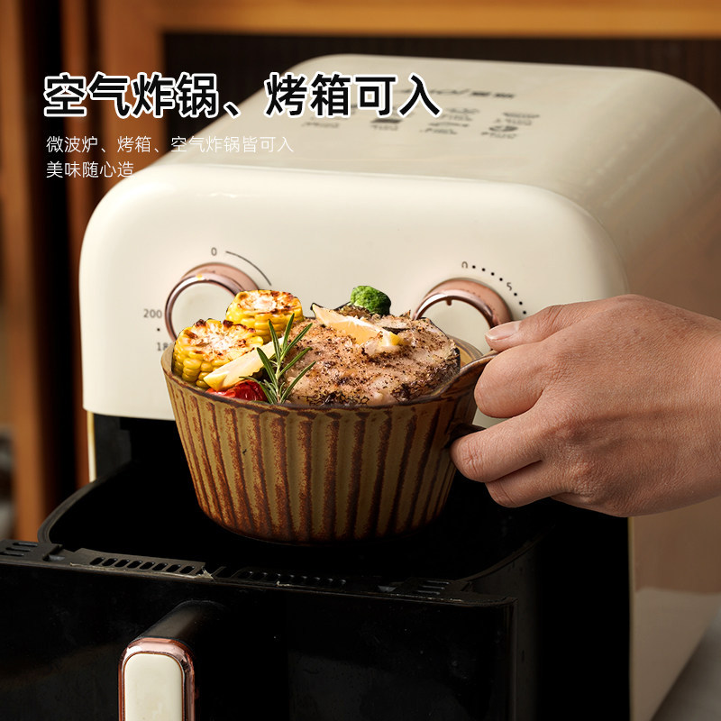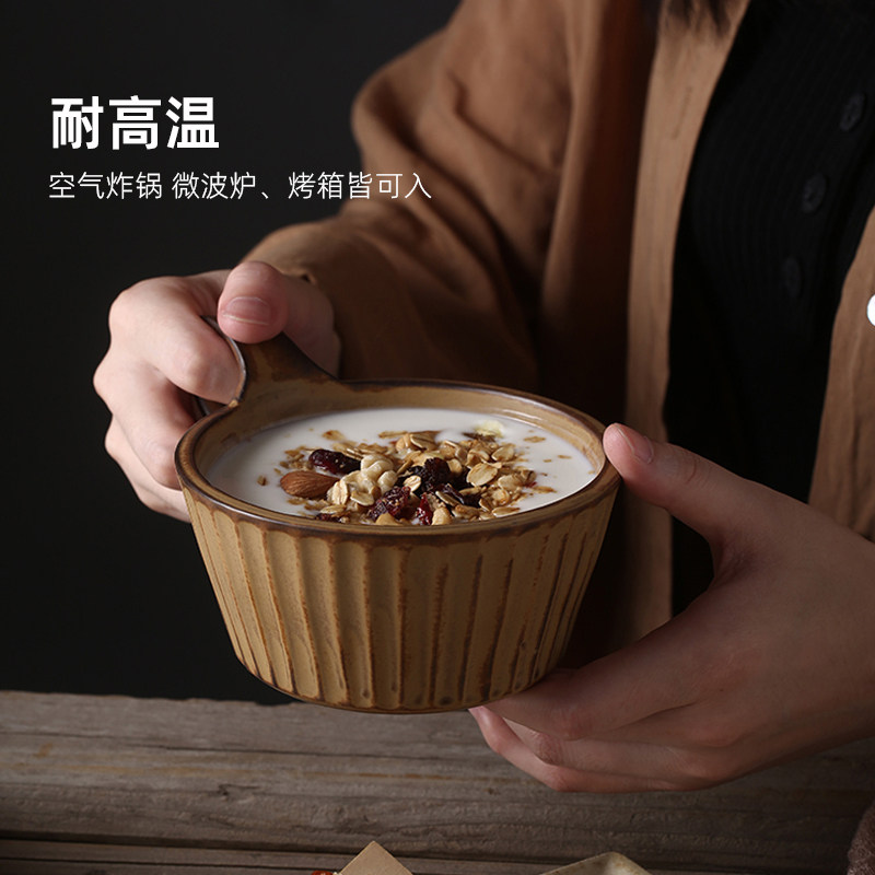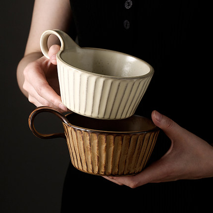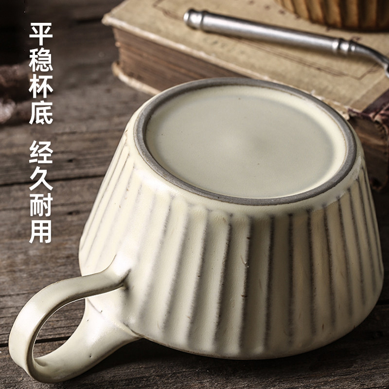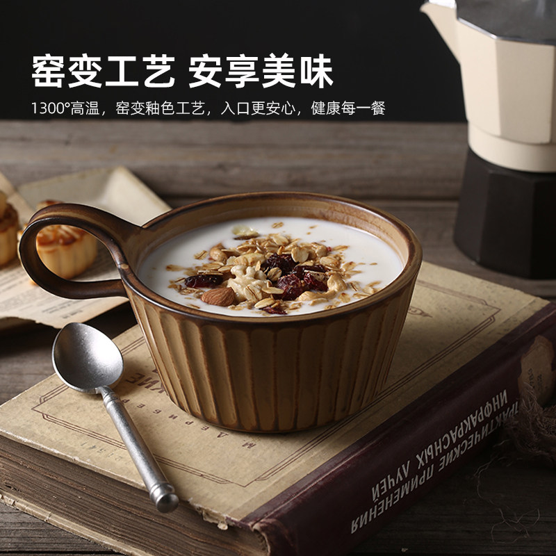 日式复古咖啡杯带勺 早餐陶瓷马克杯燕麦可微波空气炸锅麦片杯子