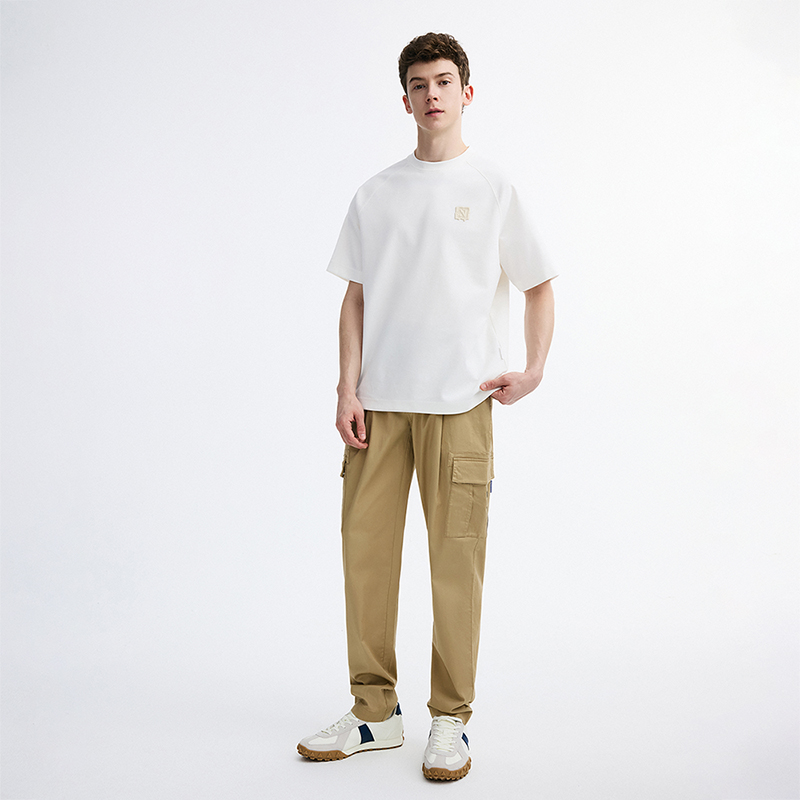 Navigare意大利小帆船卡其色休闲裤男秋季工装休闲裤宽松裤子