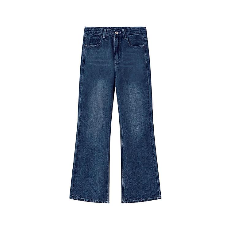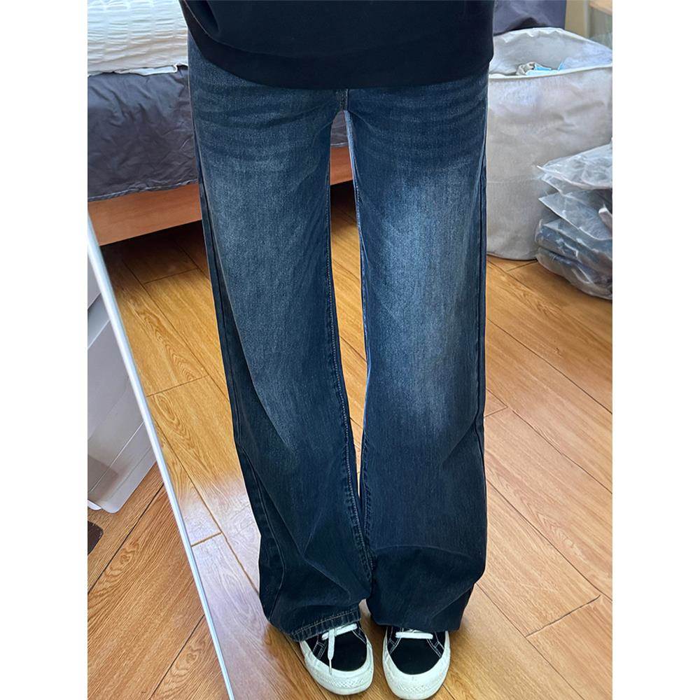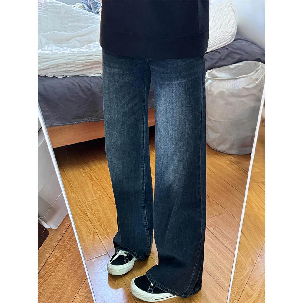 深蓝色微喇牛仔裤女夏季新款胖妹妹mm梨形身材高腰宽松显瘦直筒裤