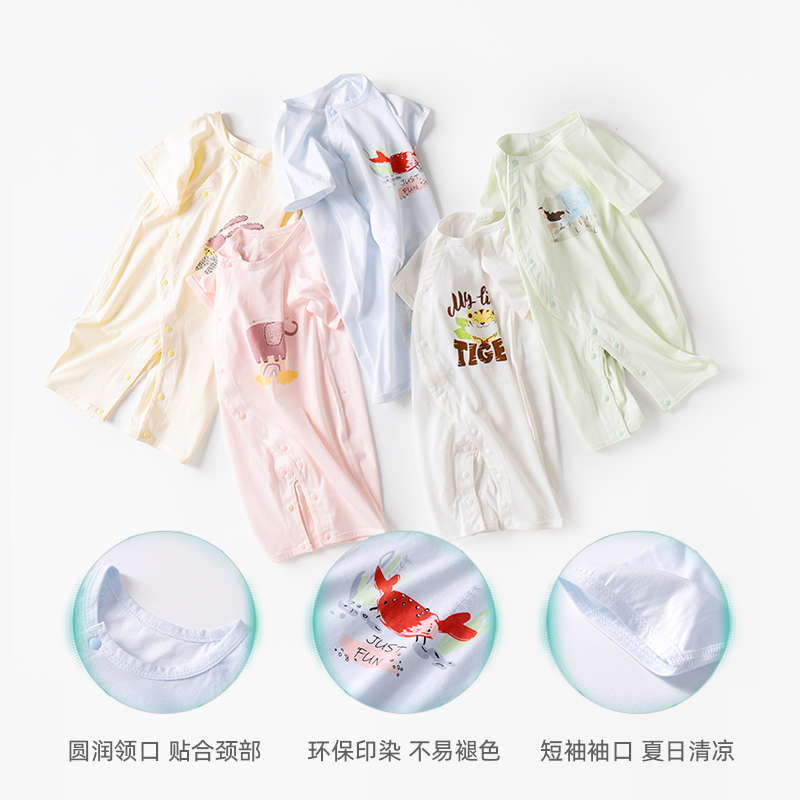 艾草抑菌婴儿连体衣服夏季薄款新生睡衣夏装宝宝短袖长裤哈衣