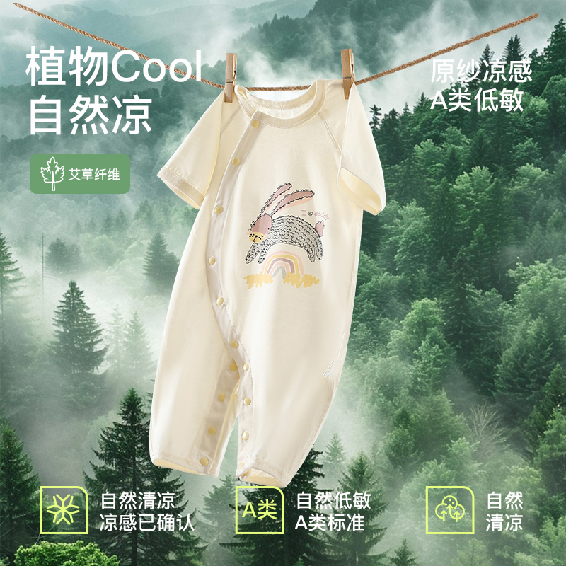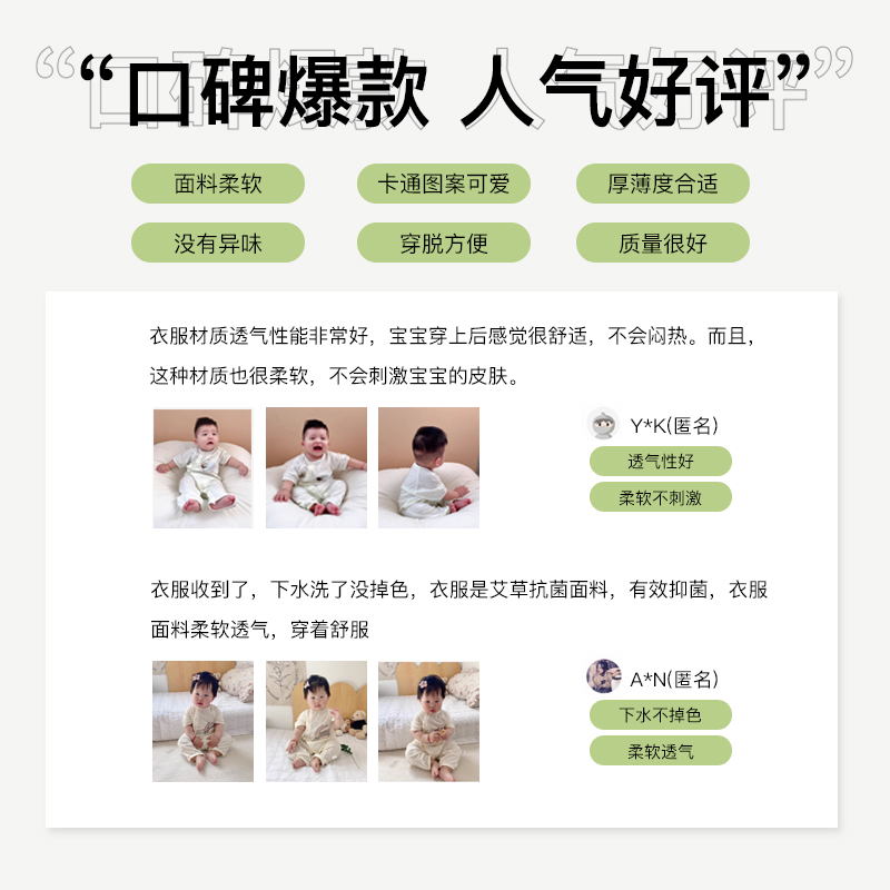 艾草棉抗菌婴儿连体衣服夏季薄款