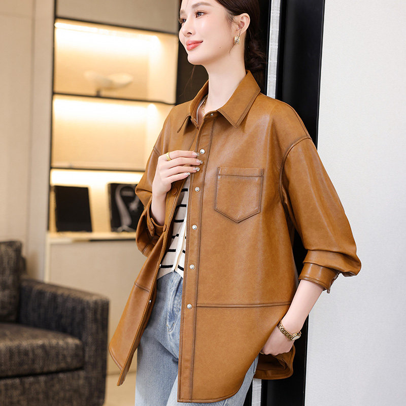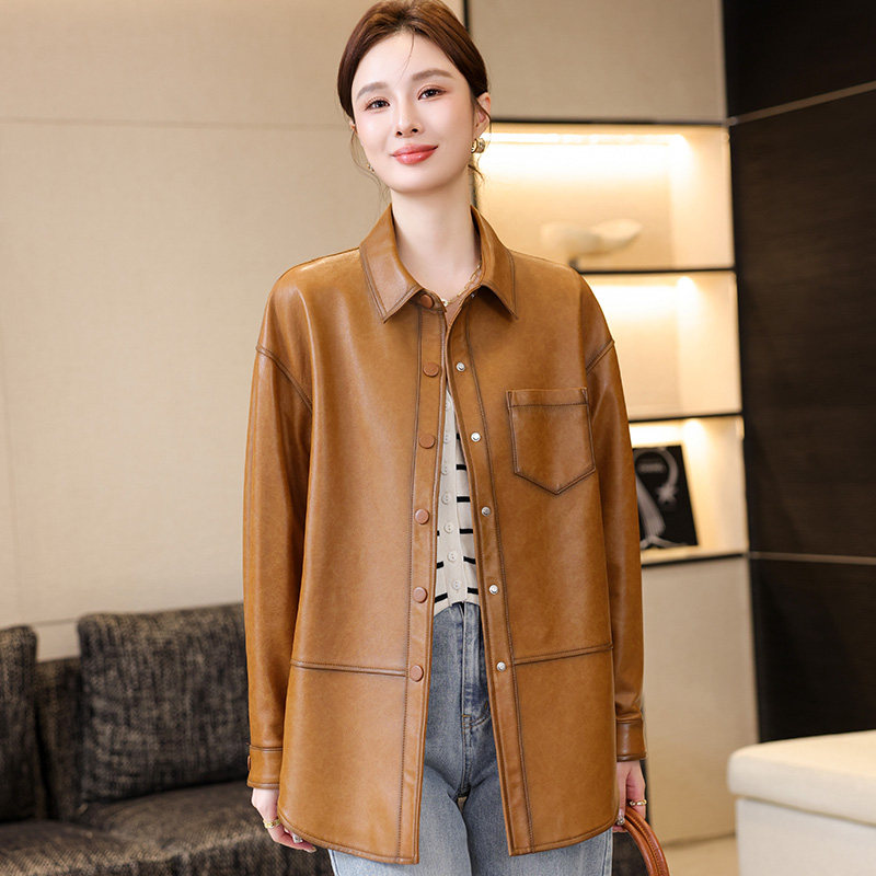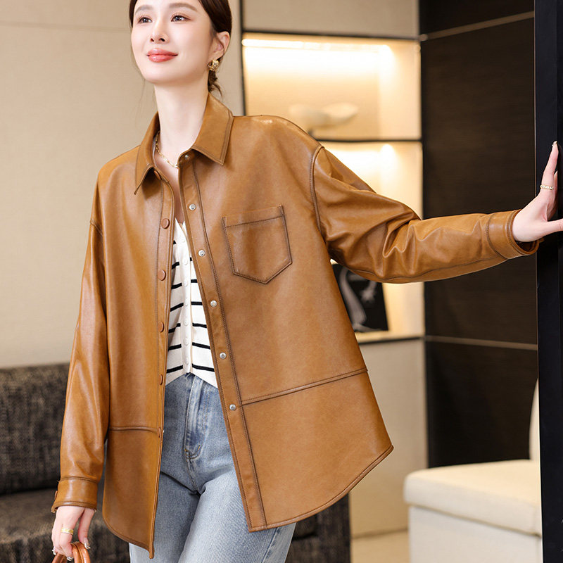 2025新款上市优质精品年秋季时尚气质衬衫领衣女装真皮绵羊皮皮衣