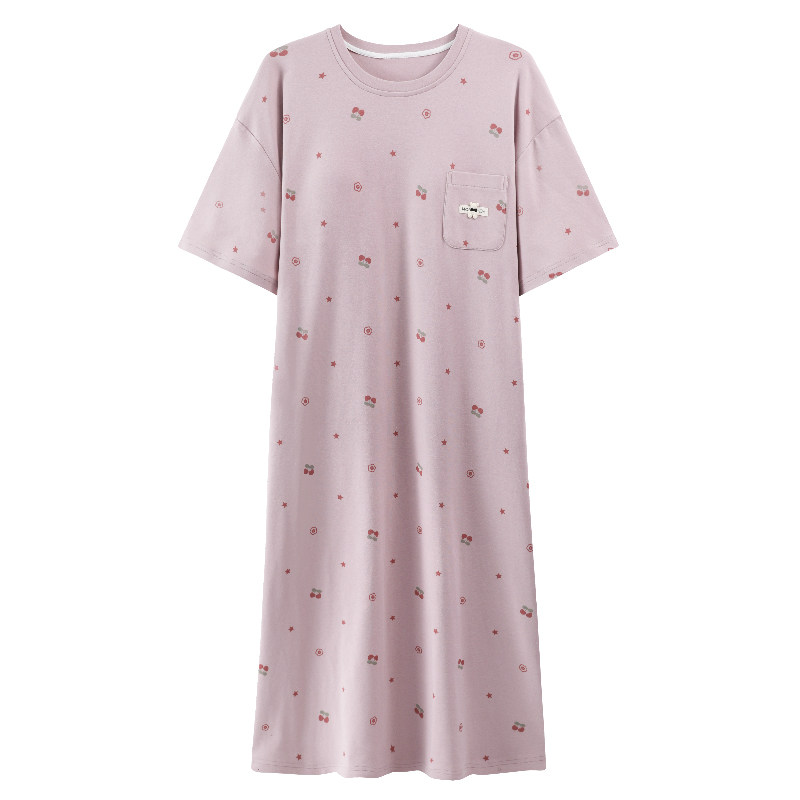 女士中长款纯棉短袖过膝夏季睡裙