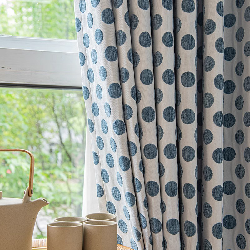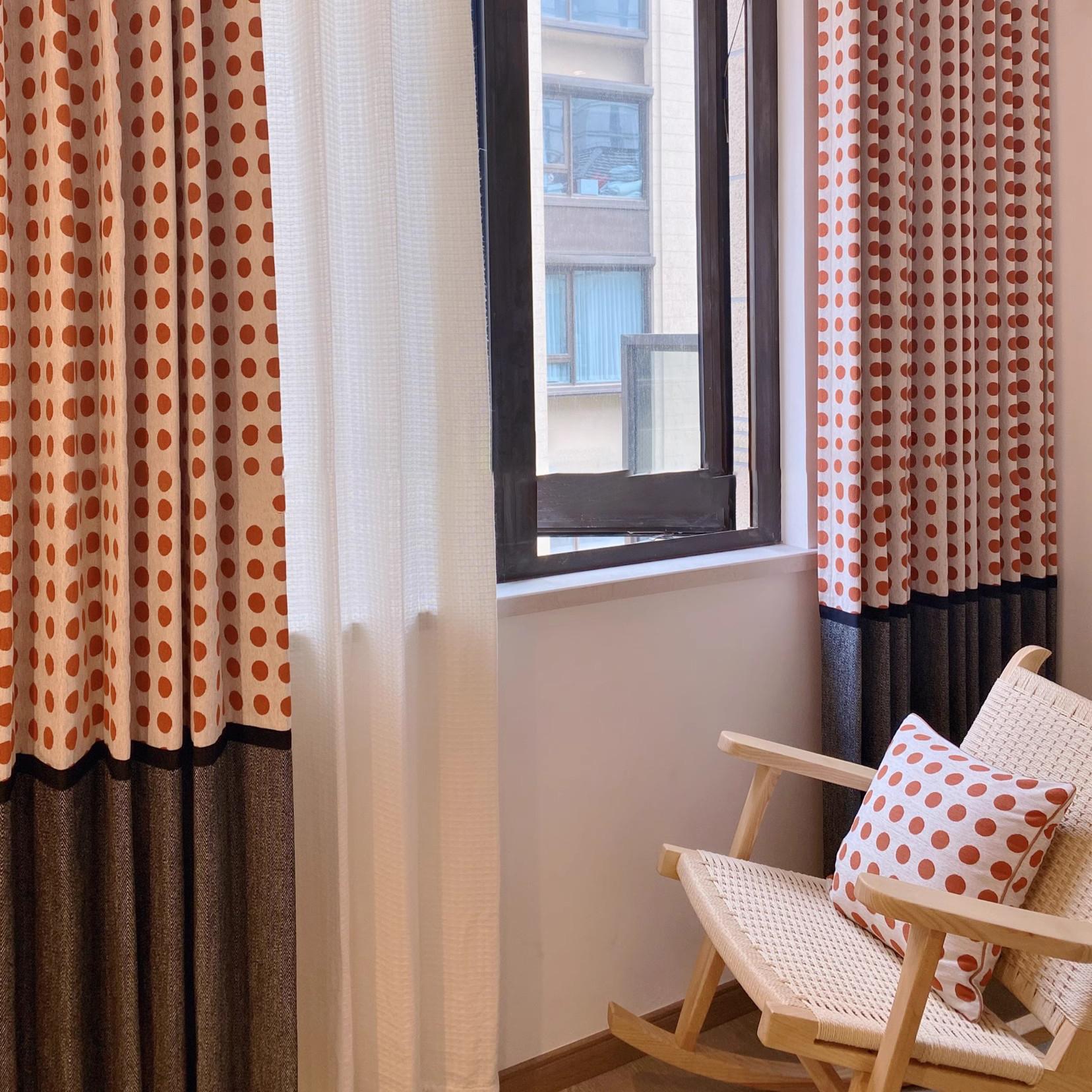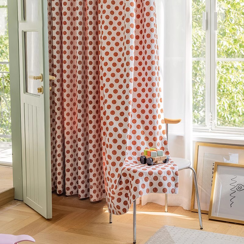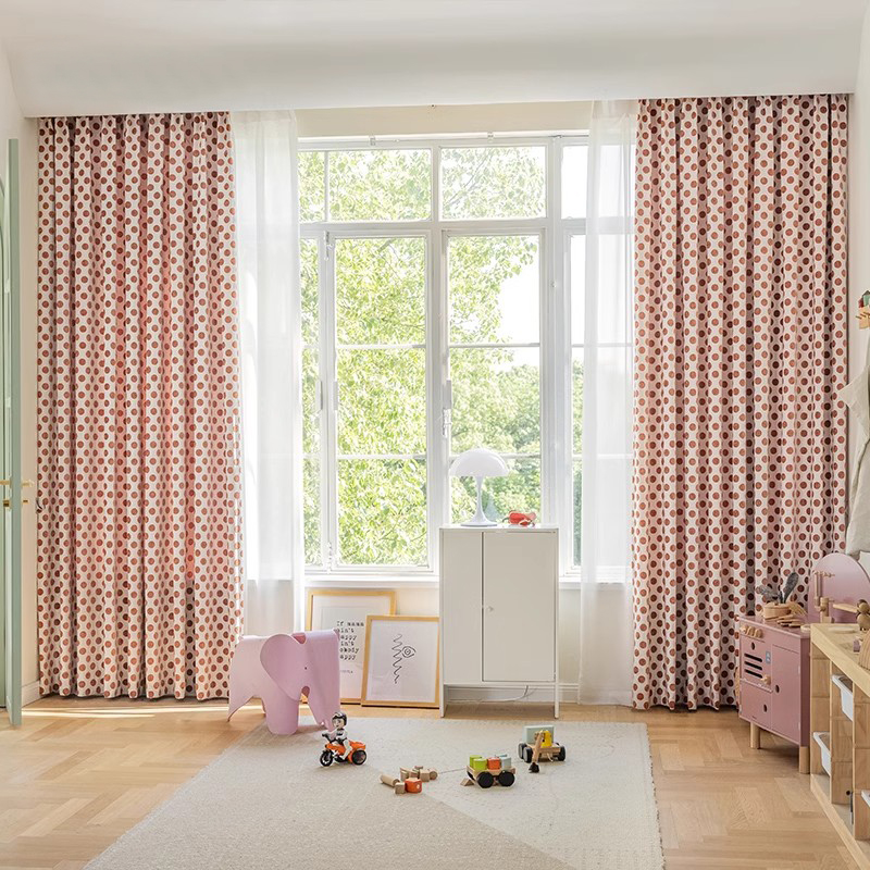 小清新公主房卧室粉色圆点窗帘定制雪尼尔遮光客厅女孩房飘窗北欧