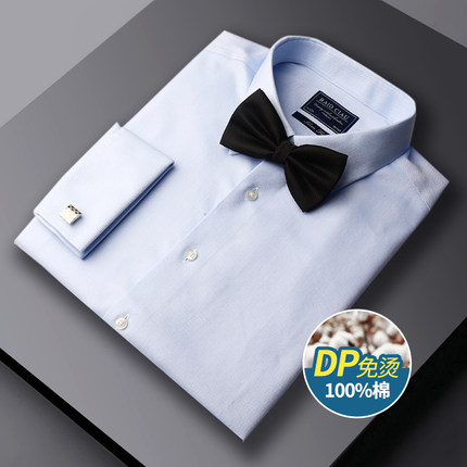 法式衬衫男长袖蓝色免烫纯棉款结婚新郎礼服正装西装男士袖扣衬衣