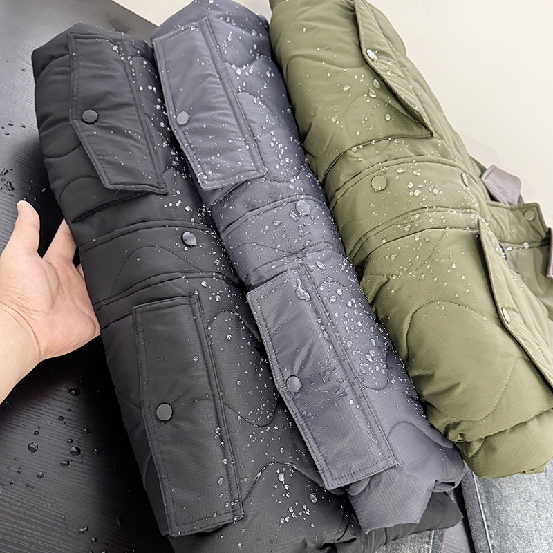 巴恩风重磅复古潮流葫芦格皮革领男士工装棉衣保暖外套50490