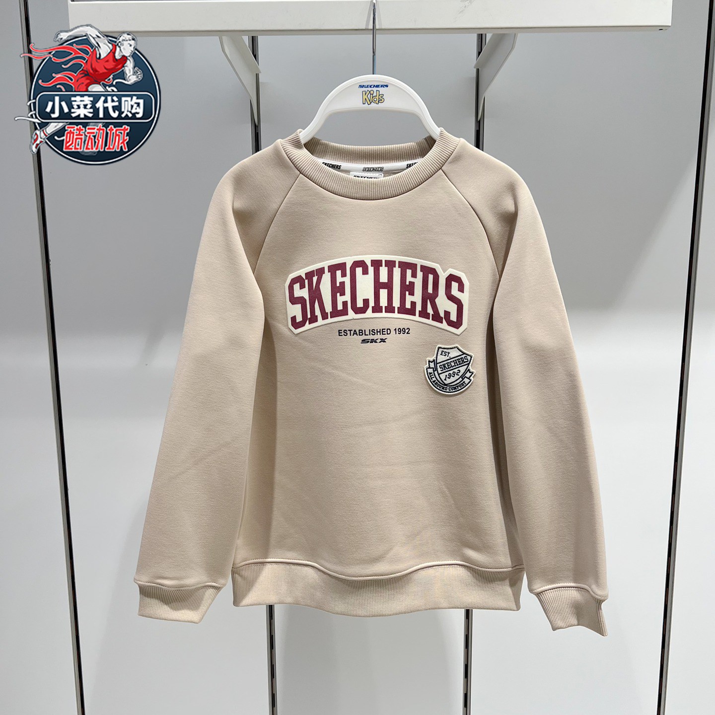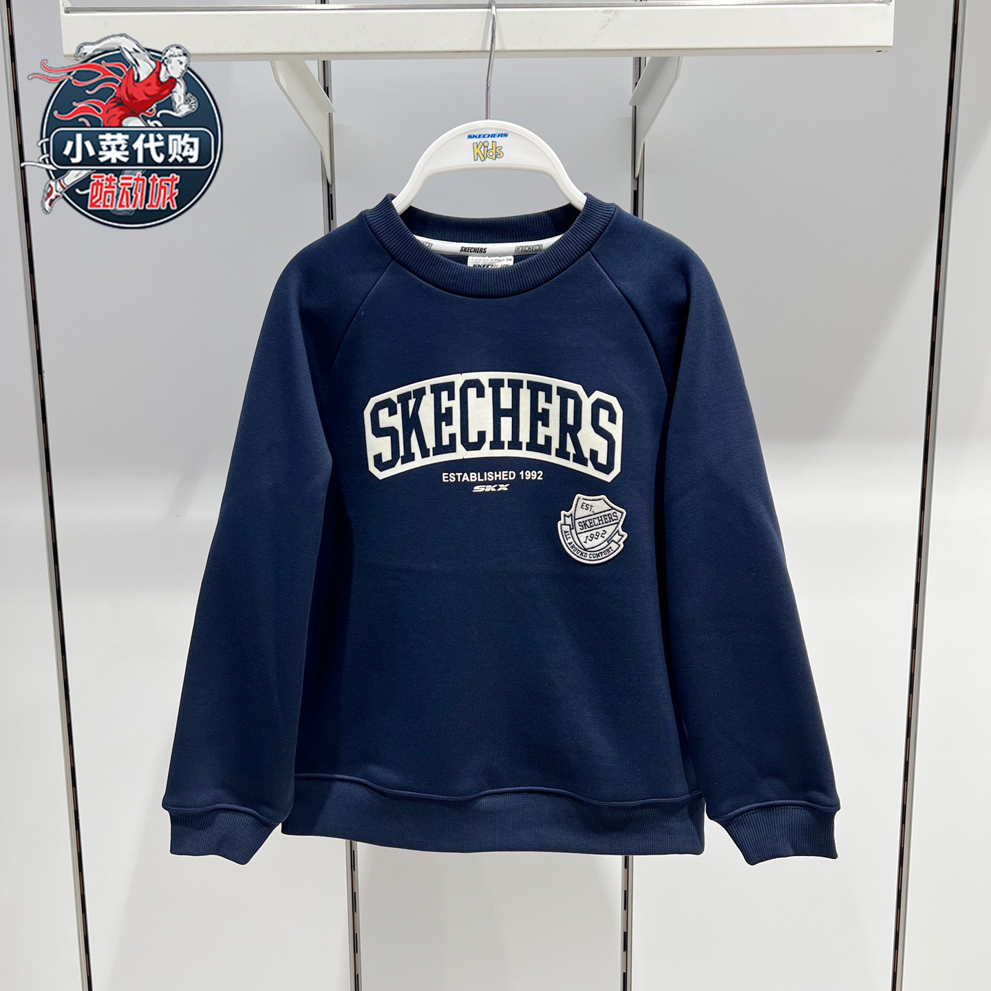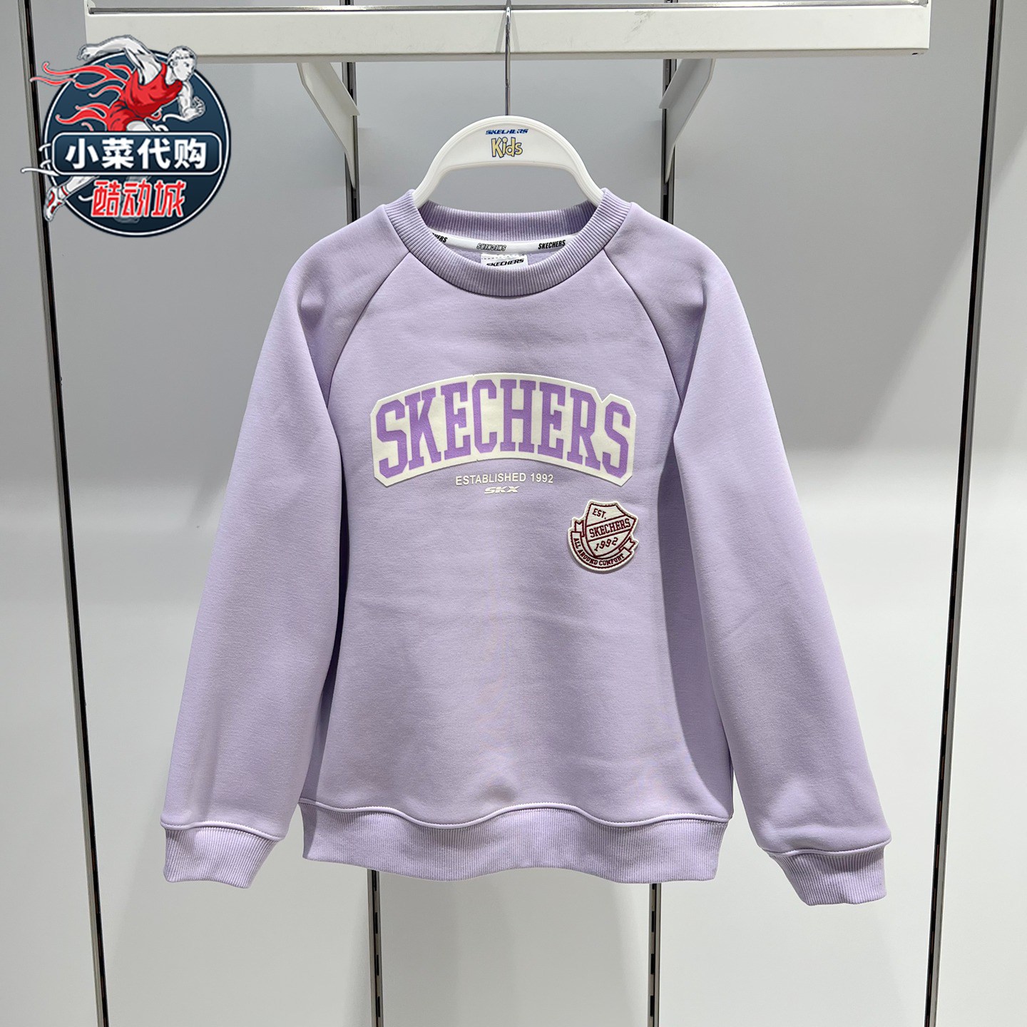 Skechers斯凯奇2025新款男女童加绒保暖运动针织套头卫衣L425K065