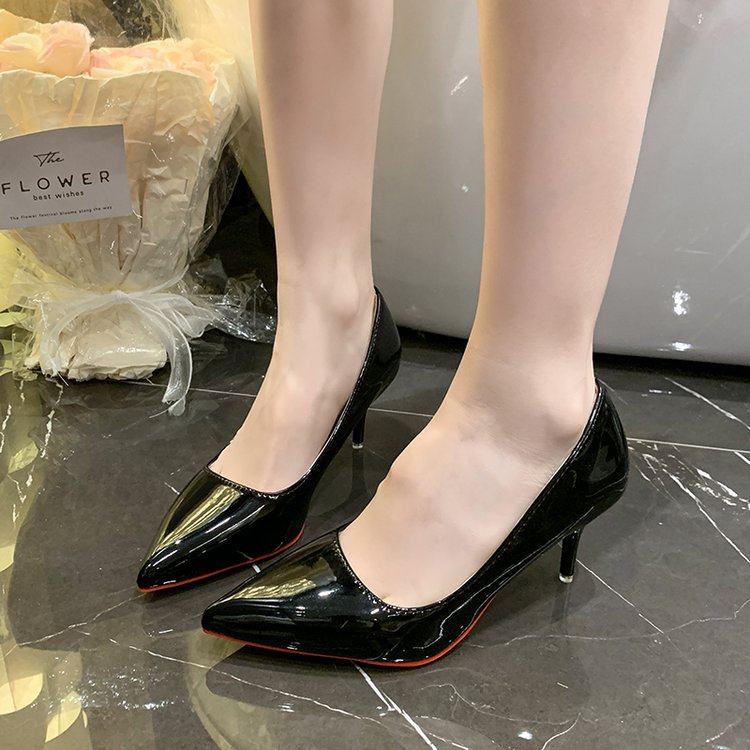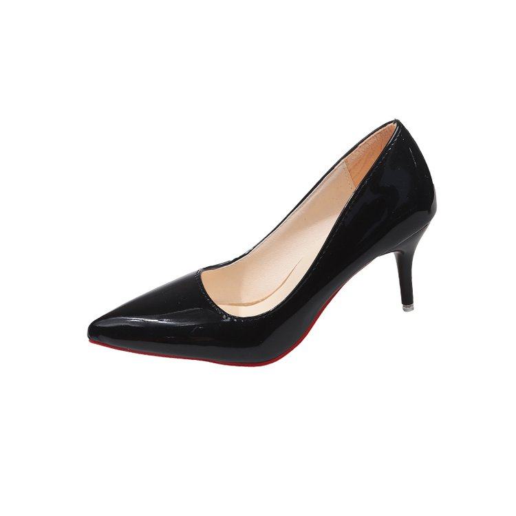 高跟鞋女2025年新款中跟5公分尖头黑色工作职业面试性感单鞋红底7