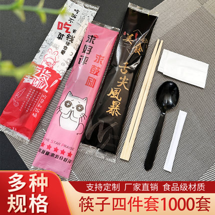 一次性筷子四件套外卖打包勺子套装餐具3三件套餐筷商用4件套快餐