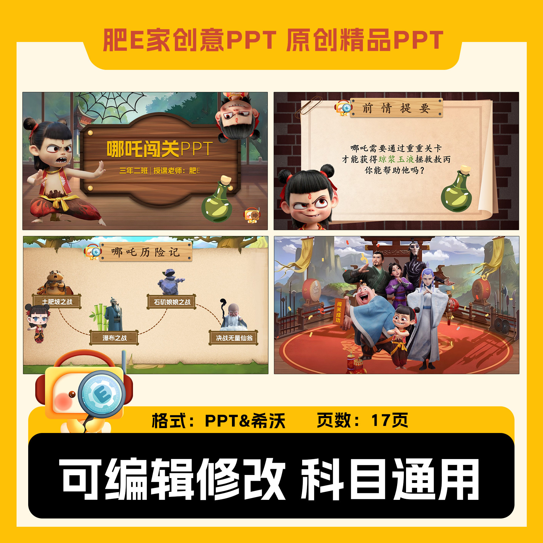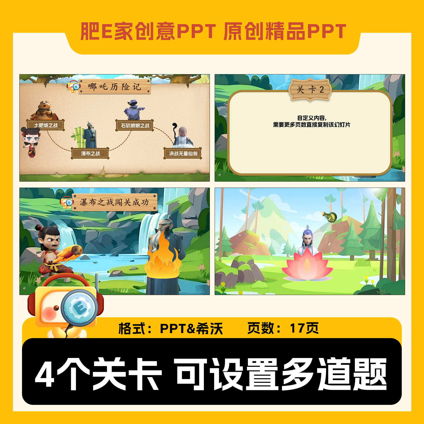 肥E家-哪吒闯关游戏ppt模板课件课堂互动趣味答题动画音效公开课