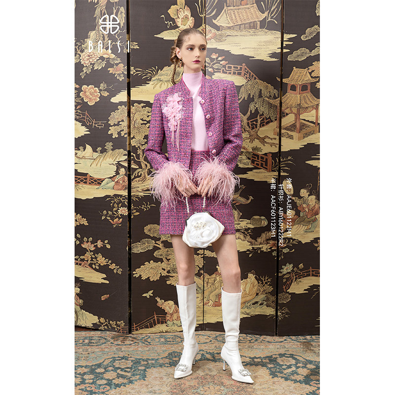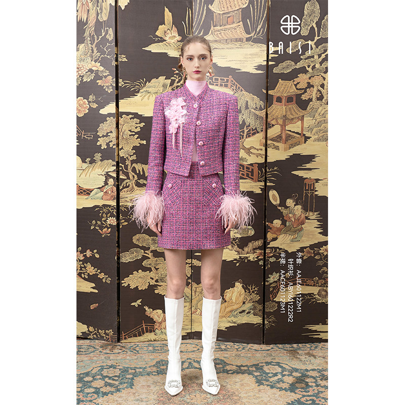 2026春季新品商场同款百丝高腰短裙小香风粗花呢设计感半身裙女