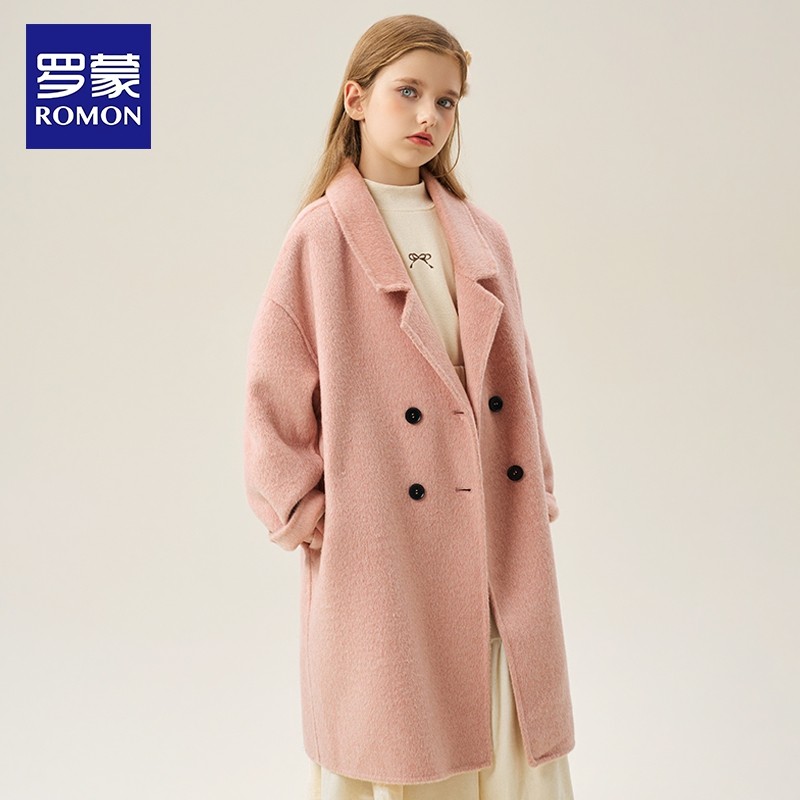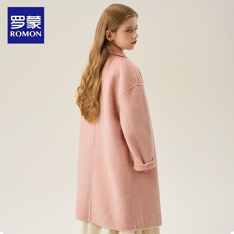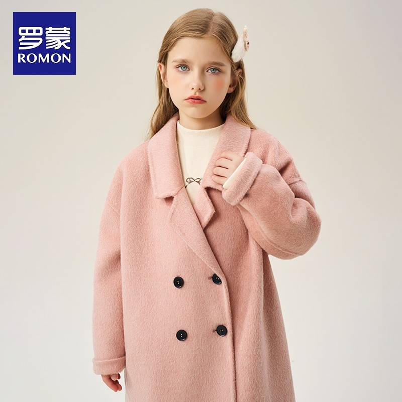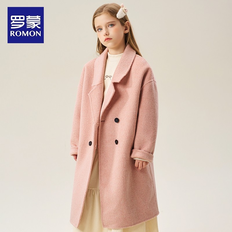 罗蒙女童双面羊毛大衣中长款西装领加厚外套2025秋冬全羊毛呢风衣