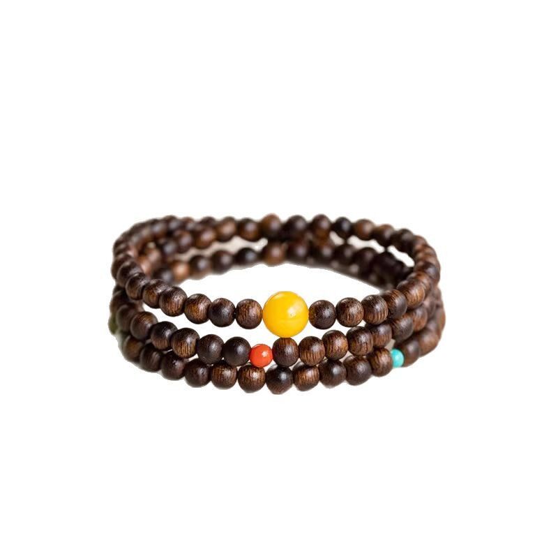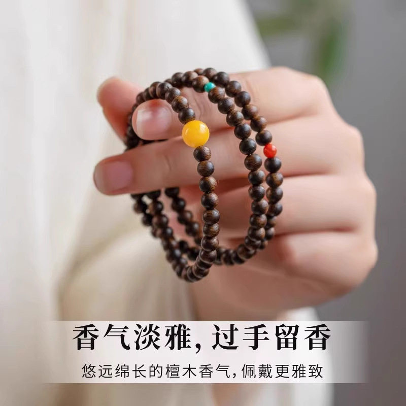 沉香手串明星同款文莱老料三圈叠戴天然蜜蜡串珠情绪稳定手链
