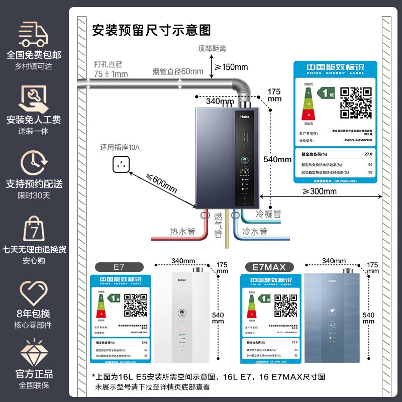 海尔燃气款热水器超一级能效增压水伺服零冷水16L升天然气ER3/E5