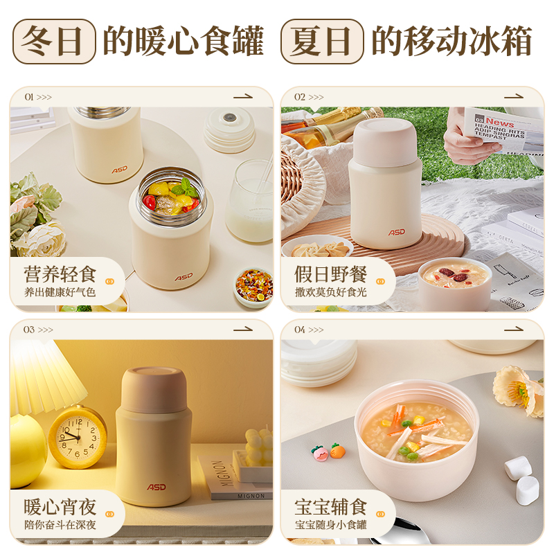 爱仕达焖烧杯不锈钢保温饭盒便携学生上班族焖粥带饭保温便当桶壶