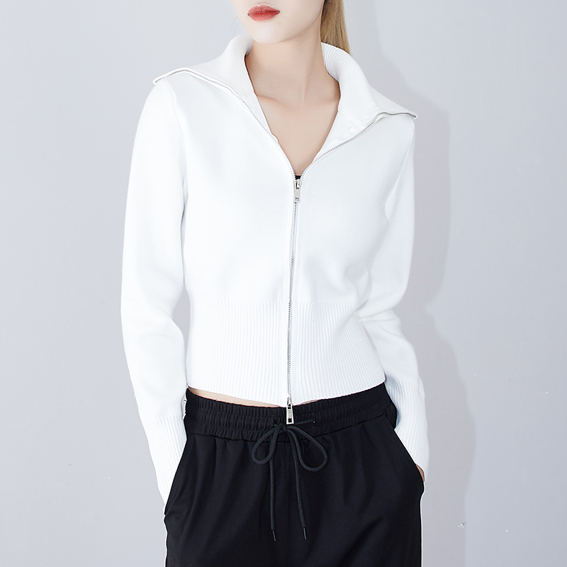 双头拉链高领春季毛衣开衫针织衫运动高腰短款纯棉打底衫女微胖