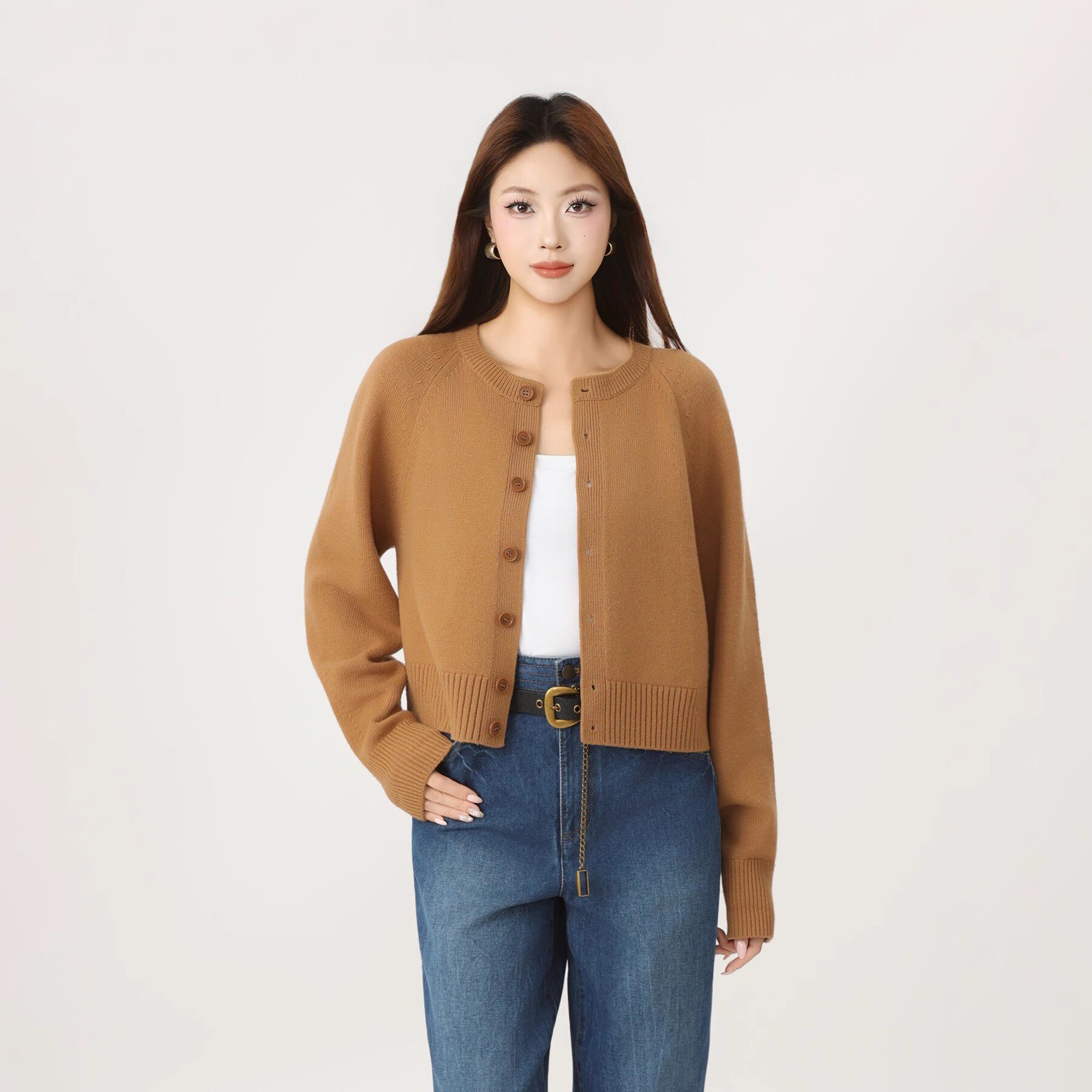 AMA{专柜阿玛家}商场同款气质简约绵羊毛针织开衫短外套女548033