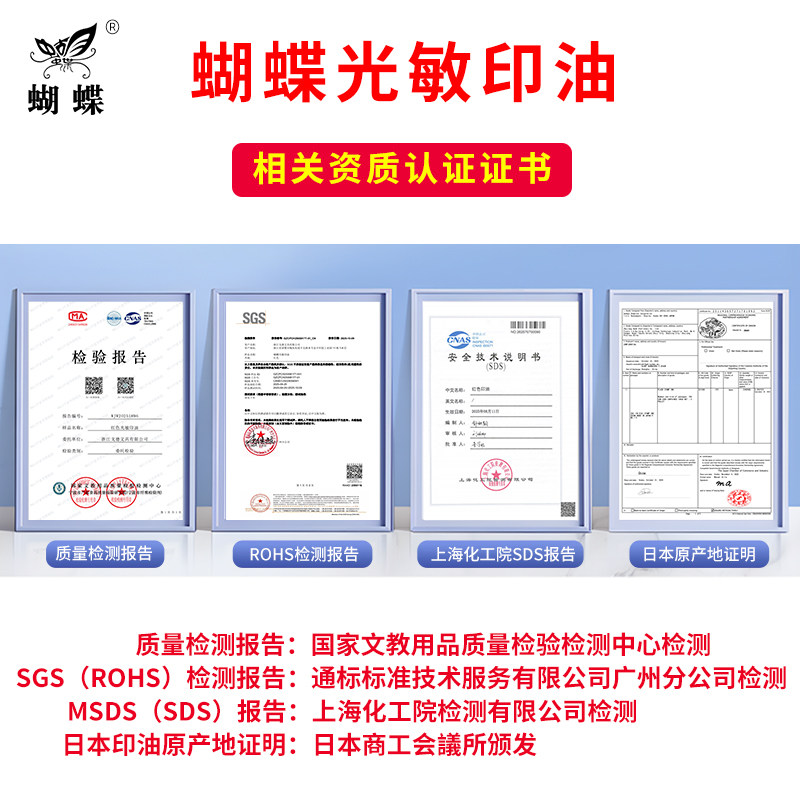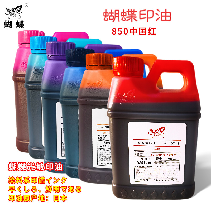 蝴蝶印油850型日本进口光敏印油1000ml红色快干色彩鲜明染料体系印章办公财务印泥油香港紫色印章专用