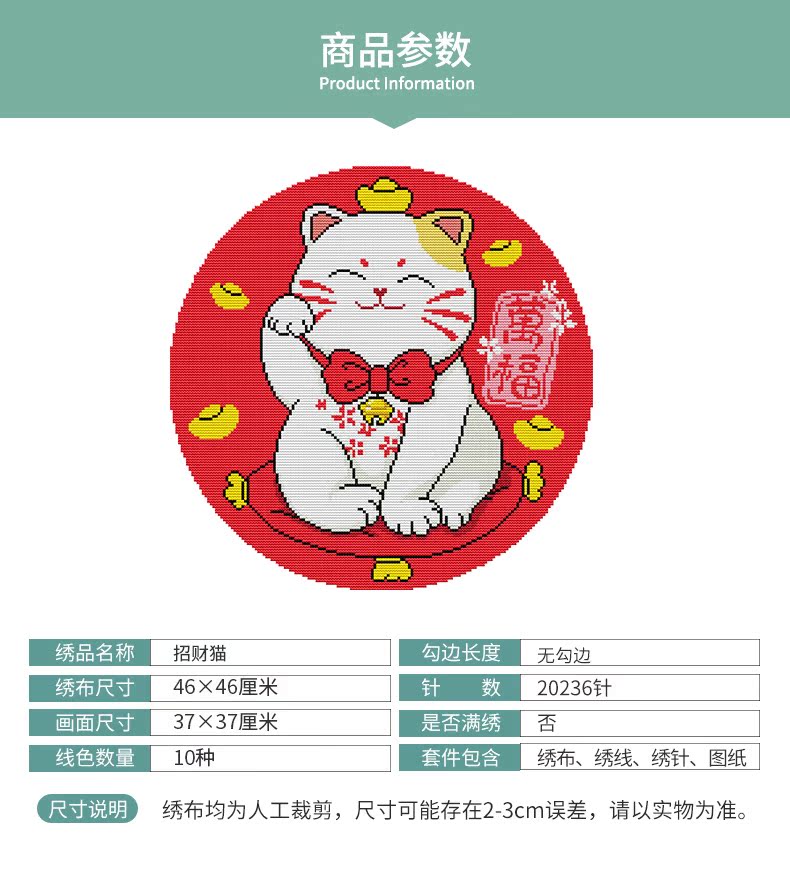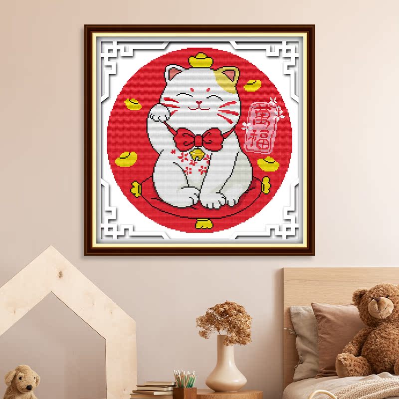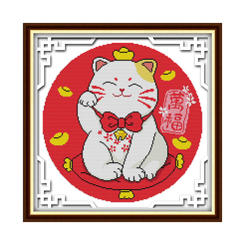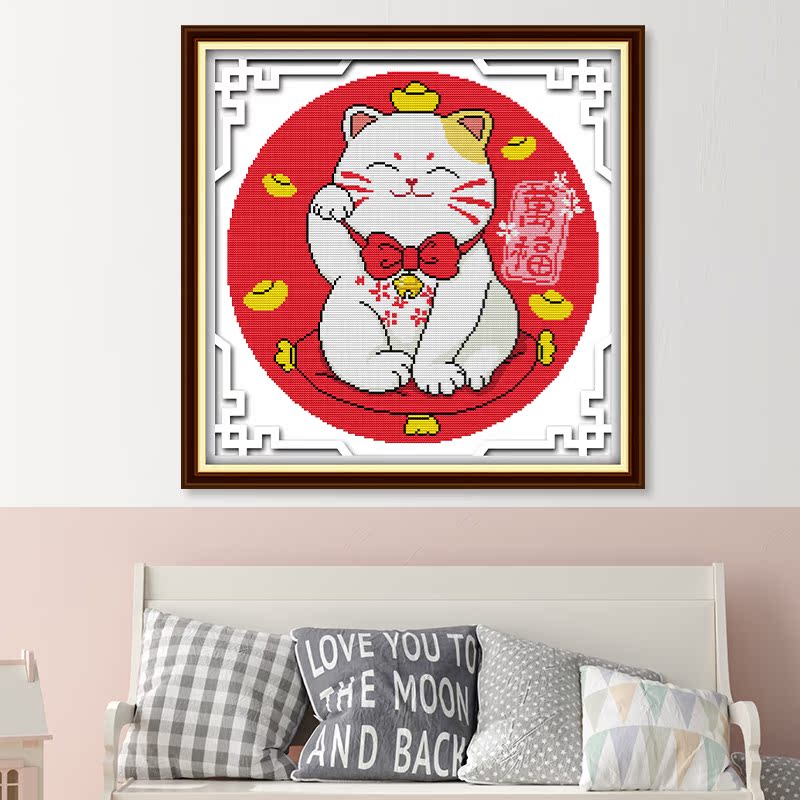 粉色招财猫卡通十字绣2025年新款线绣粉桃花猫咪客厅卧室手工刺绣