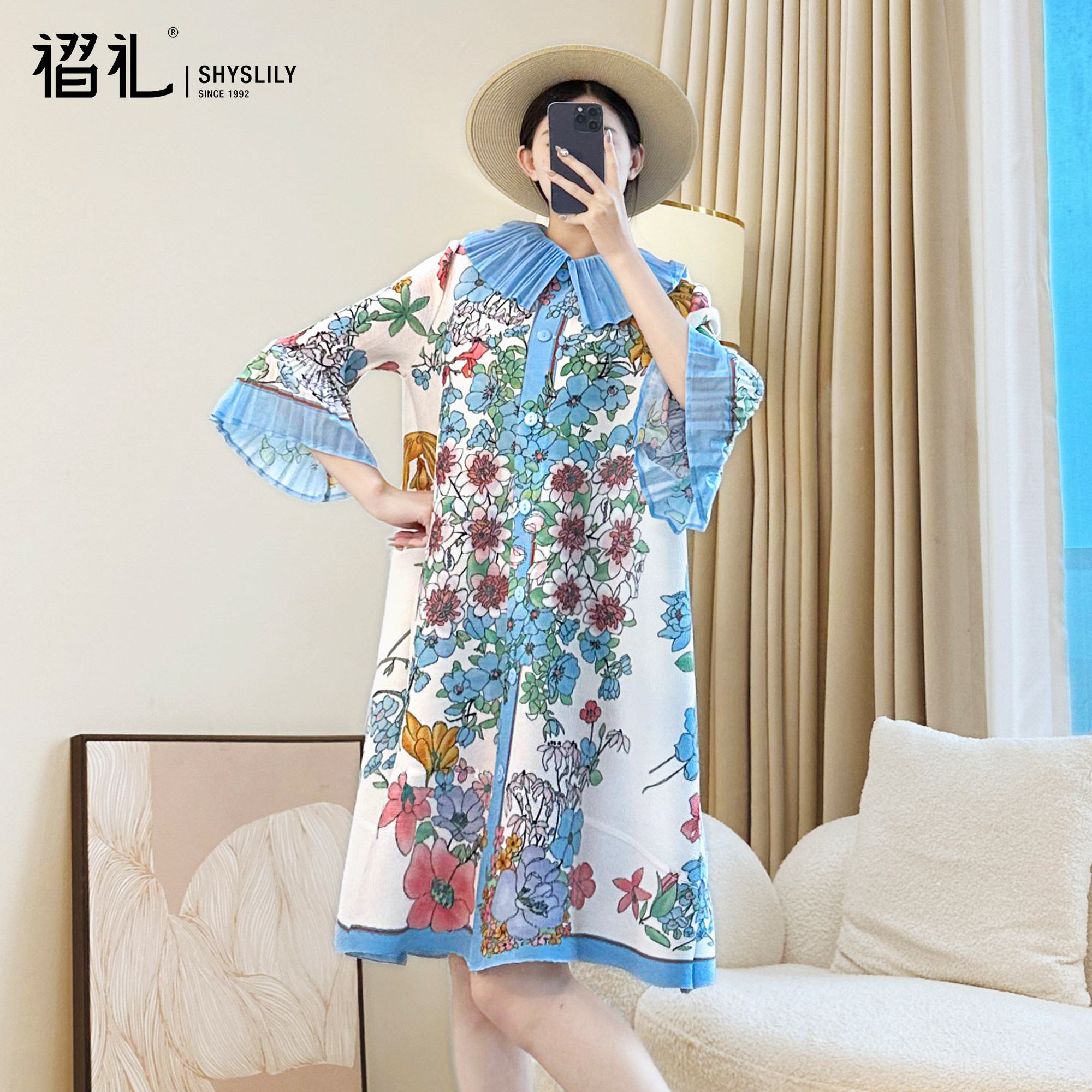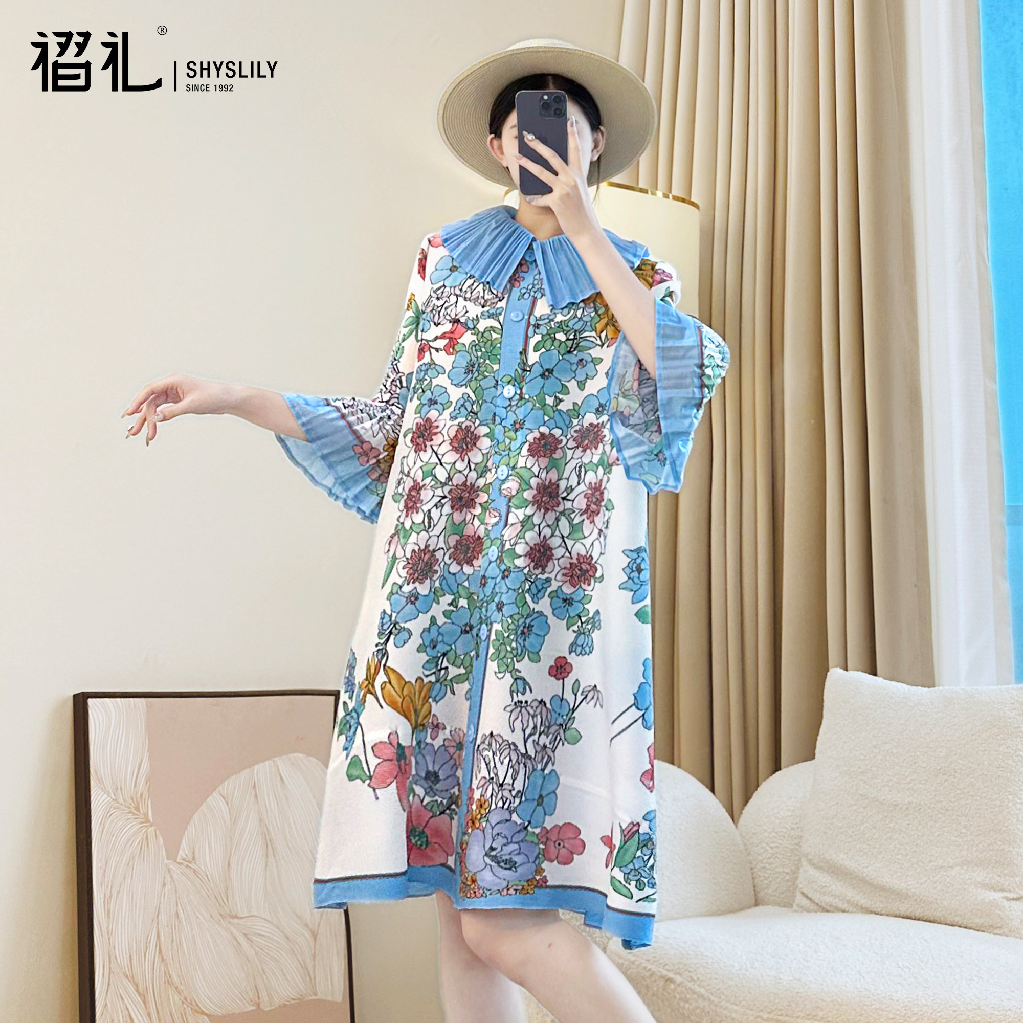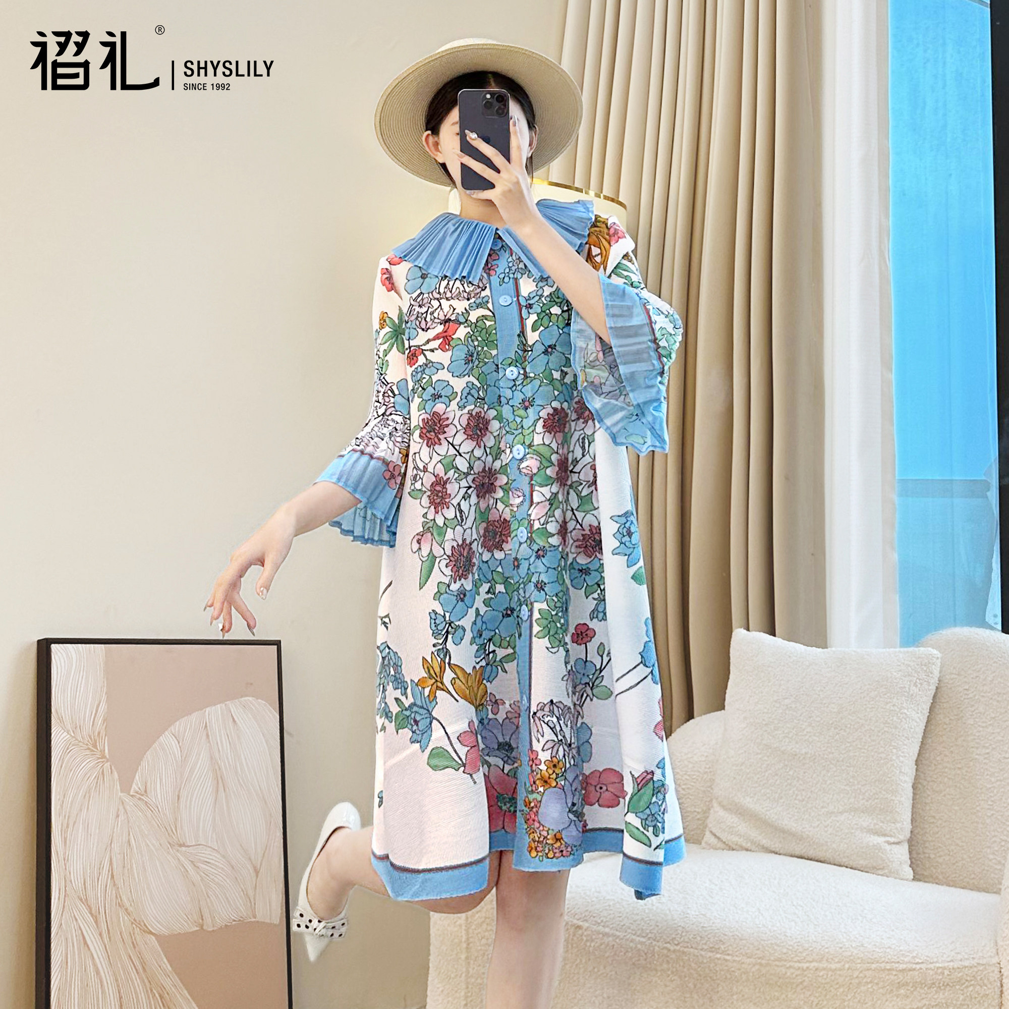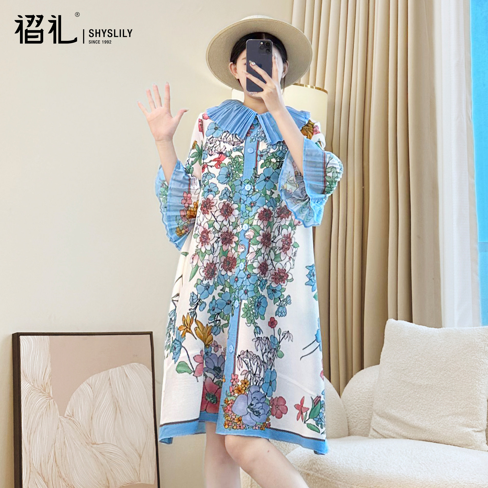 三宅减龄褶皱连衣裙2026春季新款海边度假宽松妈妈裙子洋气大码女