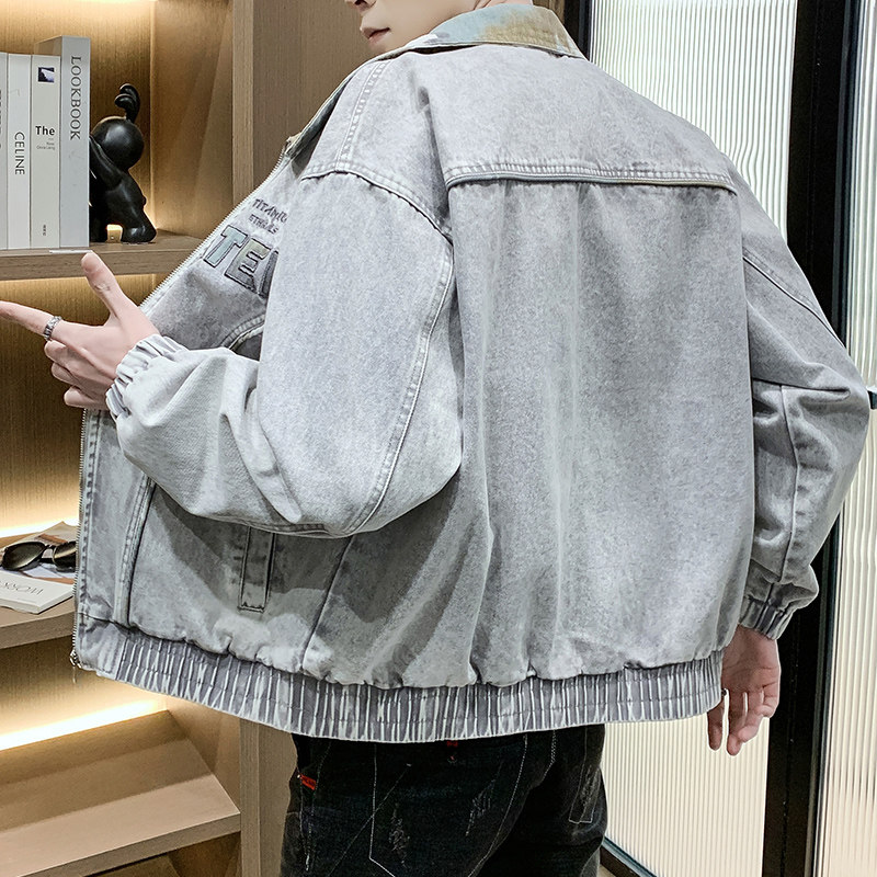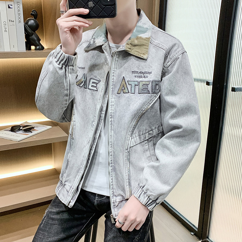 做旧水洗牛仔外套男士春季高级感痞帅刺绣夹克潮牌青少年男装外衣
