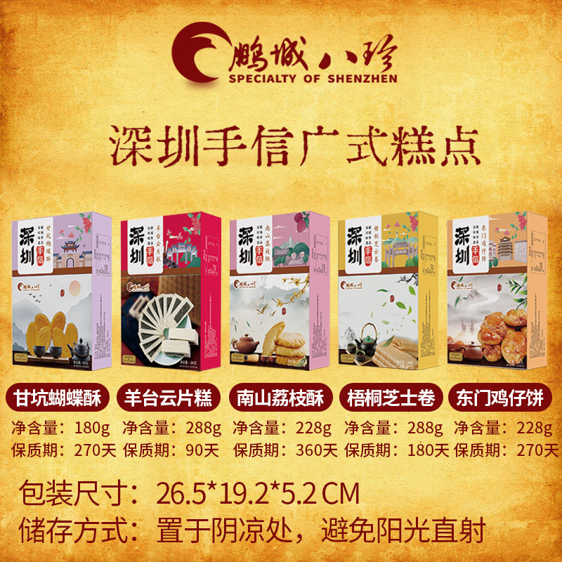 深圳特产手信鹏城八珍鸡仔饼云片糕荔枝酥芝士蛋卷蝴蝶酥糕点零食