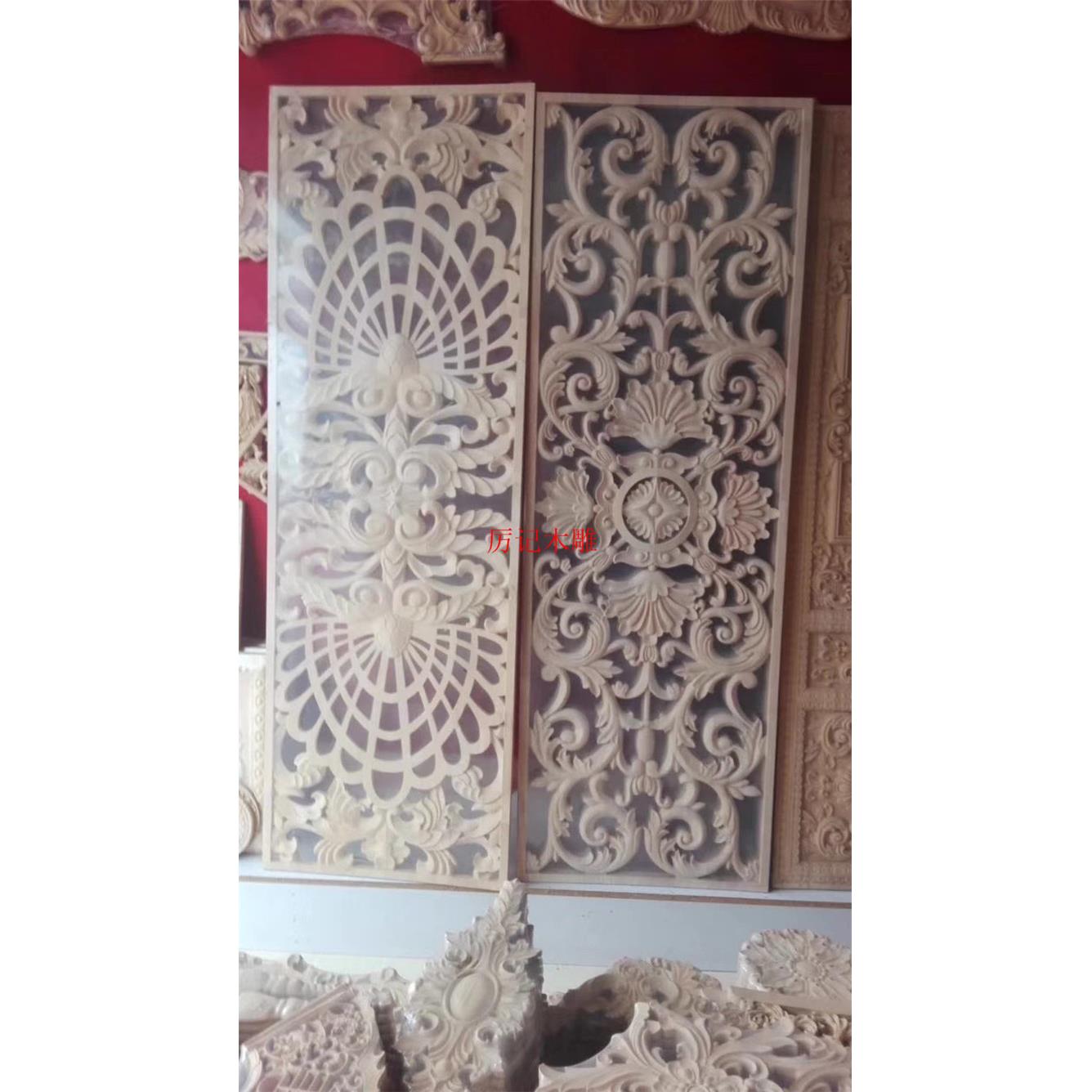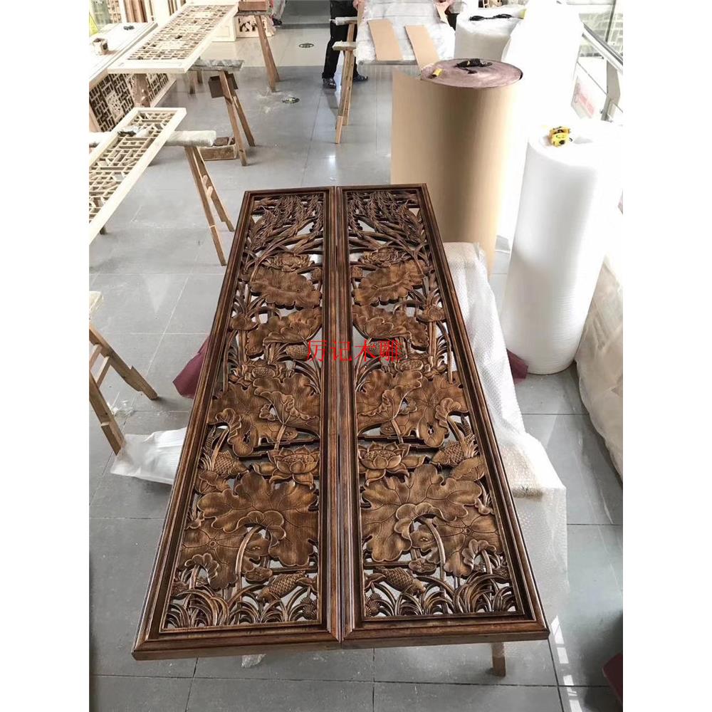 东阳木雕花板中式仿古实木玄关手工雕刻吊顶背景墙隔断屏风定制