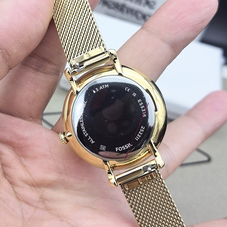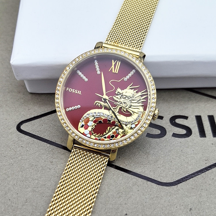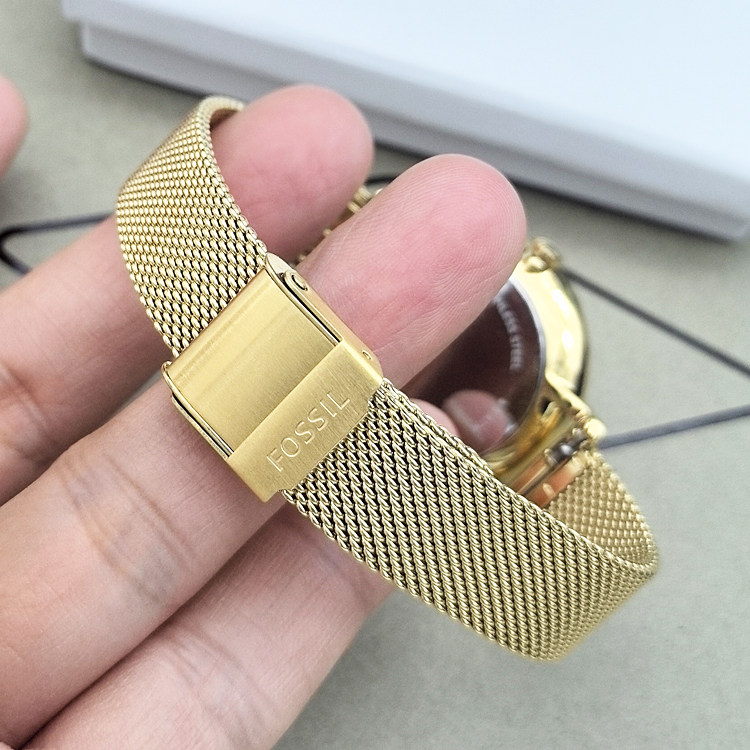 FOSSIL手表金色龙图鹏时尚镶钻不锈钢网状表带石英防水女表ES5316