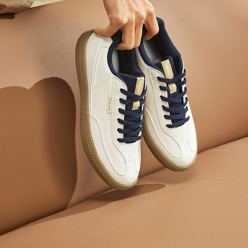 361度女鞋T头鞋运动鞋2025新款平底板鞋革面小白鞋复古德训鞋女款
