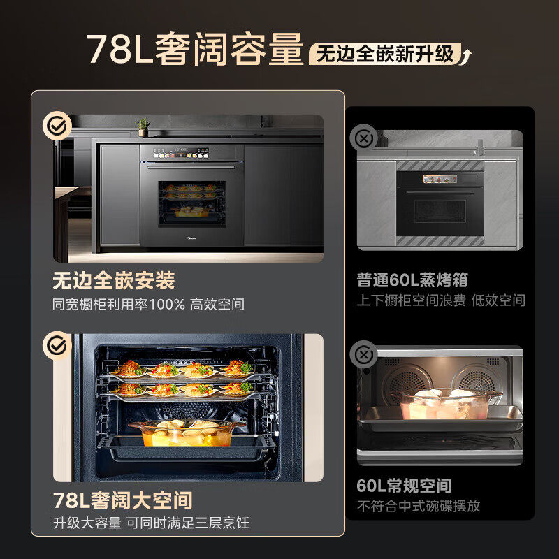 美的微蒸烤一体机GC7嵌入式78升大容量蒸烤箱微波炉蒸烤炸炖5合1