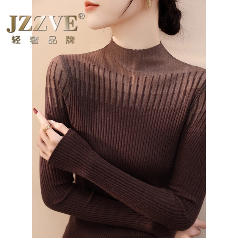 针织毛衣女式新款半高领网纱设计感韩版百搭显瘦打底衫针织毛衣女