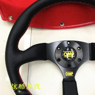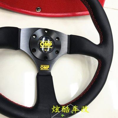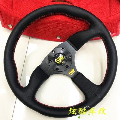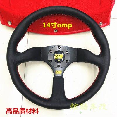 14寸真皮汽车改装 赛车竞技游戏 平面小凹方向盘 高品质材料350mm